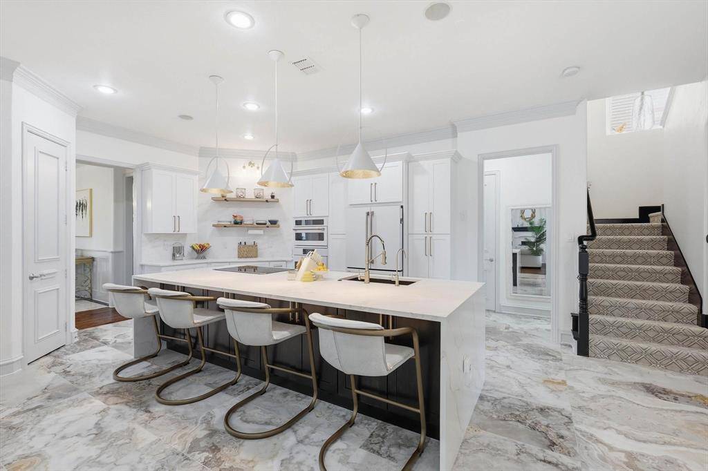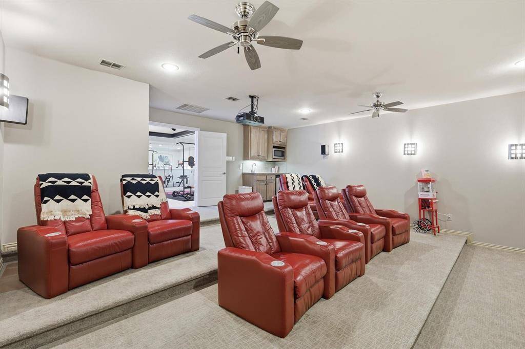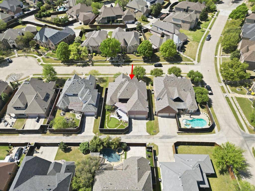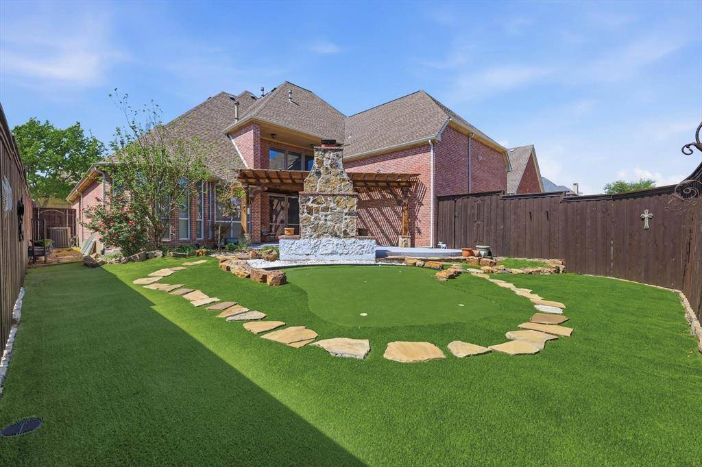 Located in a quiet cul-de-sac and within walking distance of the award-winning community clubhouse and pool, this beautifully renovated 4-bedroom home offers an exceptional blend of luxury and functionality.Fully remodeled in 2024, the home features a stunning chef's kitchen with a full suite of high-end Café appliances, delivering both elevated style and top-tier performance. A spacious private study with custom-built bookshelves provides the perfect work-from-home environment.Both the primary suite and a guest suite are conveniently located on the first floor. Their bathrooms have been thoughtfully redesigned with sleek, modern walk-in showers, creating spa-like retreats. Upstairs, you'll find two generously sized bedrooms connected by a Jack-and-Jill bathroom, along with a dedicated gym space and a pre-wired media room ready for your personal touch.The low-maintenance backyard has been transformed with synthetic turf and a golf putting green—perfect for entertaining or relaxing outdoors. Enjoy resort-style living with access to an award-winning clubhouse, three outdoor pools, a fitness center, and pickleball courts, all just a short 2-minute walk away. Scenic lakeview trails directly behind the property offer a peaceful escape and a seamless connection to nature.Located within the highly desirable Frisco ISD and just minutes from premier shopping, dining, and entertainment, this home is a rare opportunity to experience true luxury living.