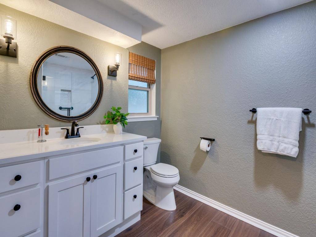 Fully renovated gem built into the side of a cliff in the Westwood Park subdivision of Oak Cliff which is known for its suburban tranquility, hilly terrain and urban convenience. Located near Kiest Park, a short walk to the Kiestwood Trail, 10 mins South of the Bishop Arts District and a short commute to downtown Dallas. The sellers have really made this house a home with its warm and inviting updates throughout, appealing layout and abundance of natural light. The kitchen has an custom soft close cabinets and drawers with quartz countertops, a basketweave marble backsplash, under cabinet lighting and Stainless Steel appliances. The living room has a stacked stone fireplace with a wood mantel, French Door and large picture windows overlooking the back patio. All 3 bathrooms have been fully renovated. The primary bedroom has a 10 X 6 custom closet and a nook that could be your makeup or sitting area. Other updates include a new electrical panel, windows, hot water heater, front elevation steps, Jeld Wen fiberglass front door, Luxury vinyl plank flooring, stair runner, gutters, designer lighting, new paint on the walls, ceilings and exterior. Roof 2021 This beauty is ready for its new owners.