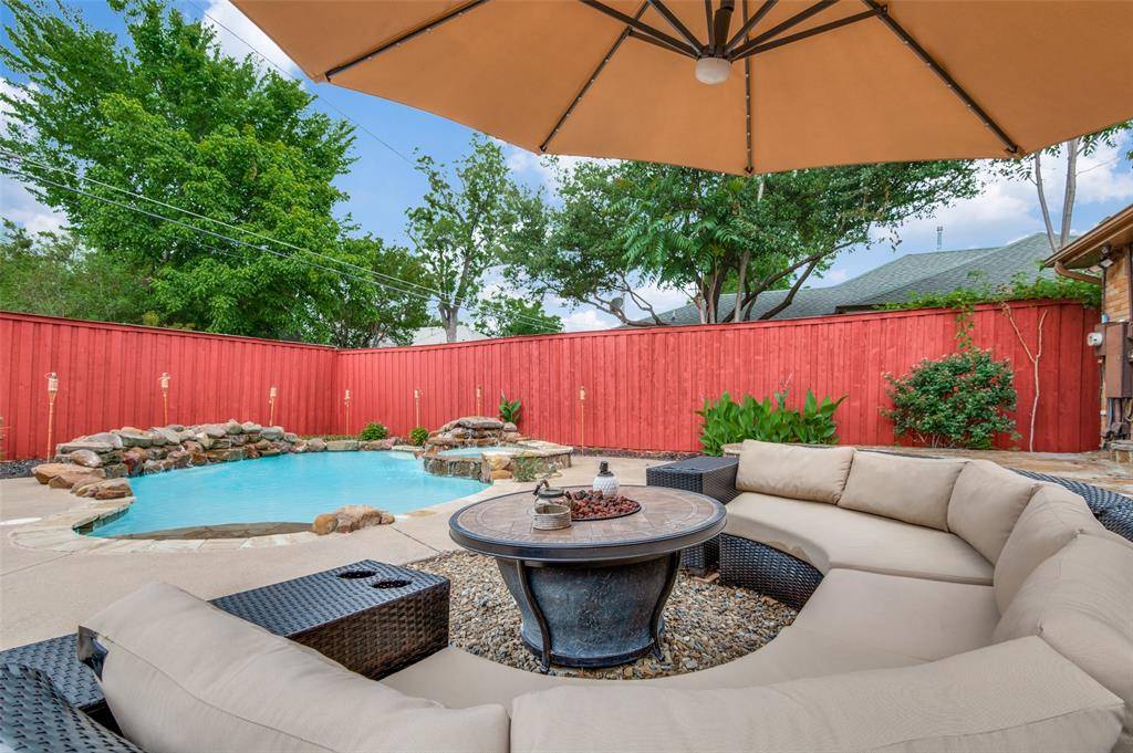 Established in the heart of historic Greenwood Hills M Streets, this storybook Tudor revival offers a rare blend of architectural character and elevated outdoor living, highlighted by a remote-controlled pool and spa with dual waterfalls. A thoughtfully designed split-bedroom layout is anchored by a spacious, versatile central room—ideal as a private study, secondary living area, or even a music lounge. The main living space showcases an original Rookwood fireplace surround, framed by period sconces, and a striking rolled-glass arched casement window that fills the room with soft, filtered light while preserving privacy. Rich hardwood flooring extends throughout, complemented by marble-clad baths and curated lighting selections that enhance the home's timeless appeal. Both bedrooms feature private exterior access, while the primary suite is distinguished by a wall of Anderson glass doors opening to the flagstone patio and pool, creating a seamless indoor-outdoor connection. The kitchen is well-appointed with stainless steel appliances, including a Jenn-Air gas range and a French door refrigerator. A secure, auto-gated two-car garage provides added convenience. Wonderfully walkable neighborhood a few steps from the Greenville Ave shops, dining, and other amenities. Washer, dryer, refrigerator, pool service, and lawn care are included. One furry friend under 20 lbs may be considered on a case-by-case basis.