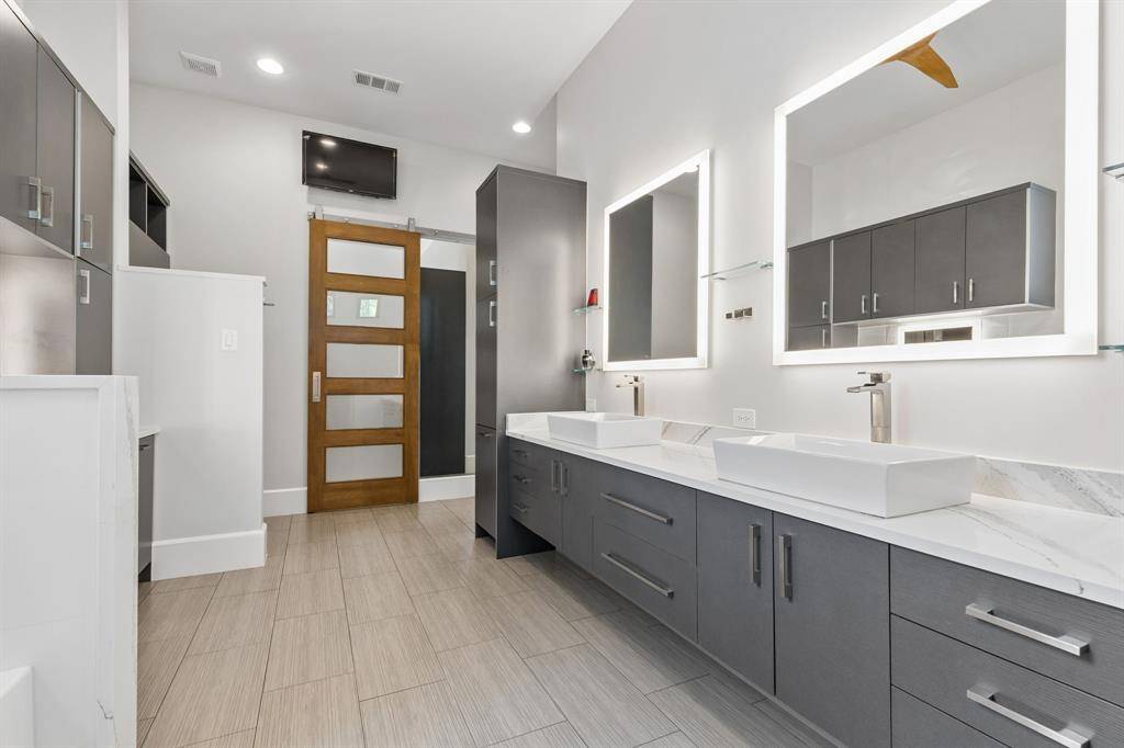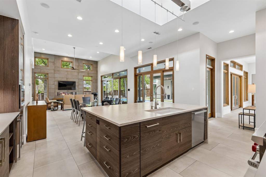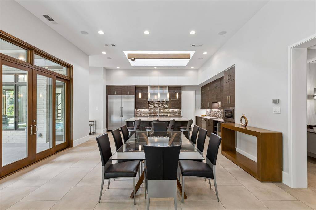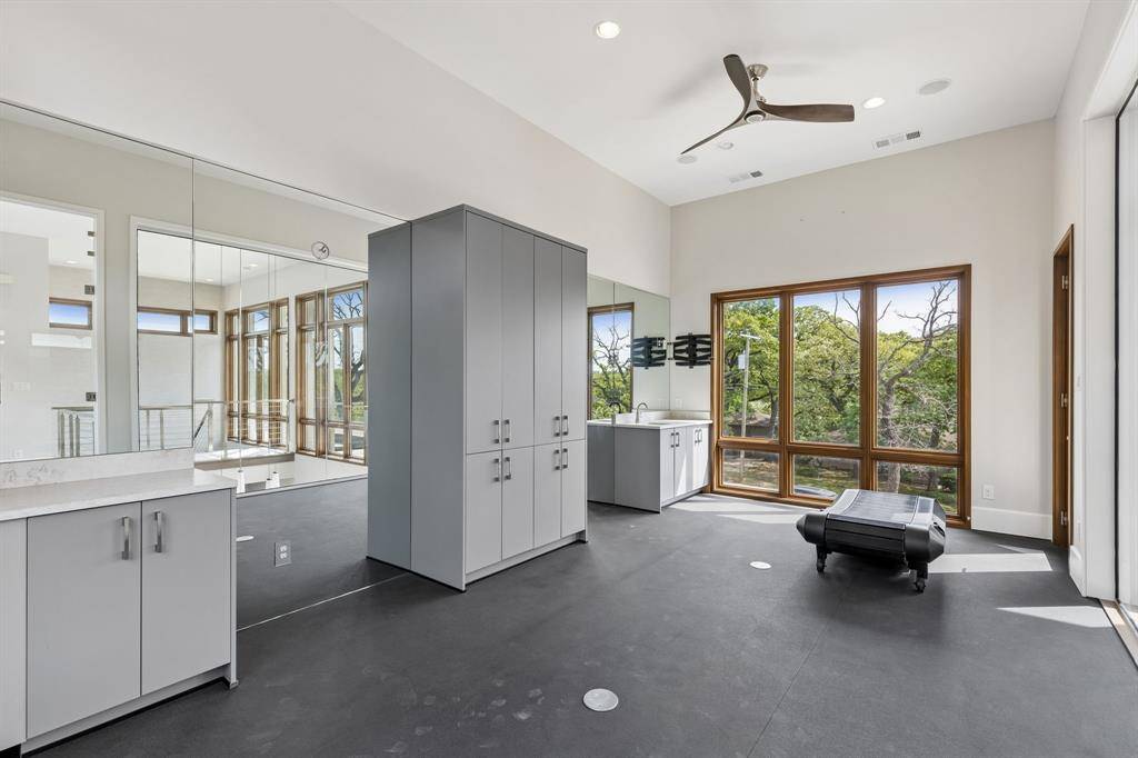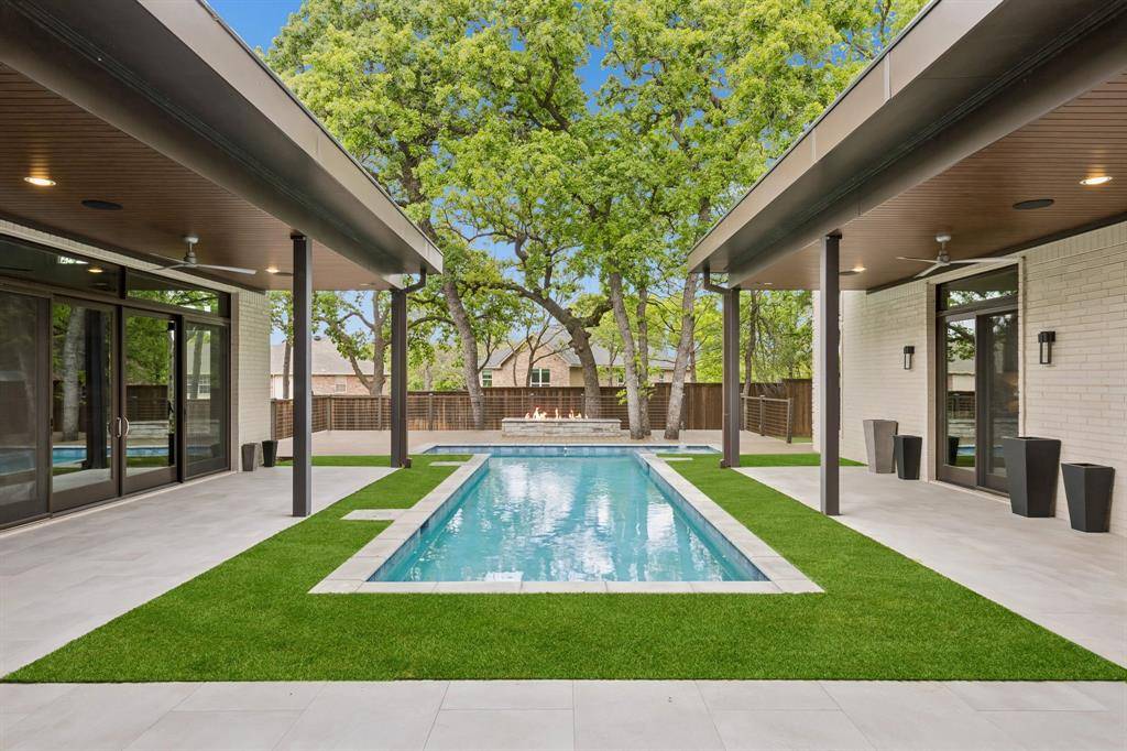 Welcome to your modern sanctuary of serenity and sophistication. One of a kind custom built modern home, nestled nearly on half an acre, designed to impress from the very first glance. Striking drive up appeal & clean architectural lines, this home makes a bold statement while offering exceptional functionality and luxury throughout. Step into a grand foyer with soaring 25 ft ceilings, frameless glass office & a wall of windows centered around a private courtyard with a resort style sparkling pool, this design creates seamless indoor-outdoor living. The heart of the home is the commercial grade chef's kitchen featuring high-end SS appliances, sleek finishes and an oversized waterfall island that serves both as a statement and for entertaining. Premium embellishments include side by side SS 64in refrigerator, Wolf 8 gas burner range, Miele vent a hood, insta hot faucet, 2 dishwashers, wine frig, & ice maker. Relax in the living room while enjoying the calming build-in fireplace & views of the pool. Primary bedroom has 2 generous walk-in closets plus built-in dressers, shoe racks including one built as a bunker style with passcode capabilities. Ensuite bath has enormous shower, dual shower heads plus a rain shower feature, jetted soaking tub, double vanities and separate built-in vanity for your get ready moments. Other highlights include private loft style glass gym equipped with rubber flooring, perfect for your weight workout or pilates, offset from 2 patios. Additional features, a putting green, outdoor firepit, ample yard and deck, plus pool is equipped with high velocity swimming jets & optional heating functions + spa. Mudroom & walk-in laundry room w storage, dual countertops, pet washing station. 5 car garage has epoxy flooring with built-in workstation. This home is a perfect blend of architectural sophistication, luxury amenities, and everyday comfort crafted for those who appreciated design, privacy and elevated living! Coppell Farmers Market a short walk.