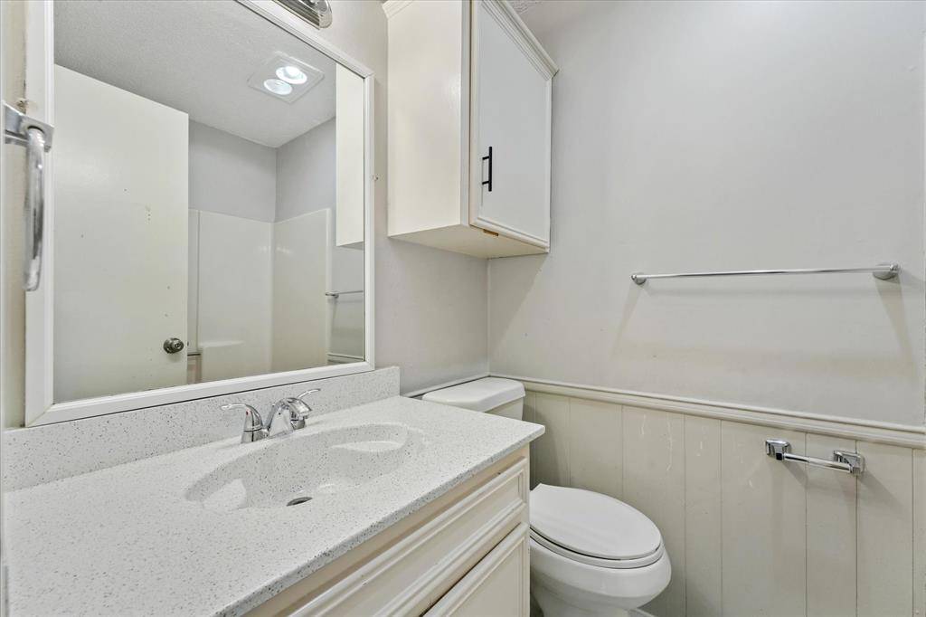 This 2 bedrooms, 2 bathroom duplex is located on a cul-de-sac. Split bedrooms each with full ensuite bathroom. Open floorplan! Galley kitchen is light and bright with white cabinetry, white stove-oven range and microwave. Dining area is enhanced by wall-to-wall built-in cabinetry and decorative lighting. Kitchen and dining room overlook the living area that boasts a focal decorative fireplace draped with windows on either side, ceiling fan and luxury vinyl plank flooring. Separate utility room with full size washer, dryer connections and cabinetry. Private backyard. Dettached 2-space carport with connected storage room. Convenient to Central Expressway and 635 to get around Dallas.