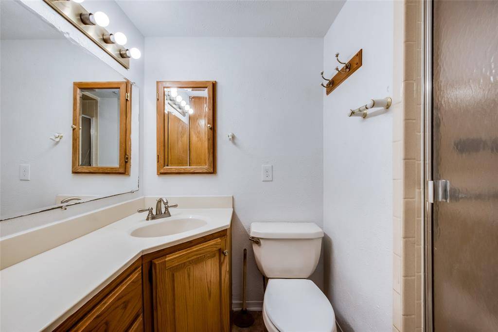 Charming Tree-Accented Corner Lot Home in Irving! Nestled on a picturesque corner lot, this 3-bedroom, 2-bathroom property boasts stunning tree-accented views. 3 spacious bedrooms, including a master suite with attached bathroom, separate bathtub, and large closet, 2 full bathrooms, 2 expansive living areas, Kitchen with modern cabinets, dual sinks, gas cooktop, and backyard views & Dining room with refrigerator included. Living room features Brick fireplace as well. Insulated, heated, and cooled garage, Extra parking on driveway and a Spacious backyard with accessible ramp, shed, and plenty of room for outdoor activities.
