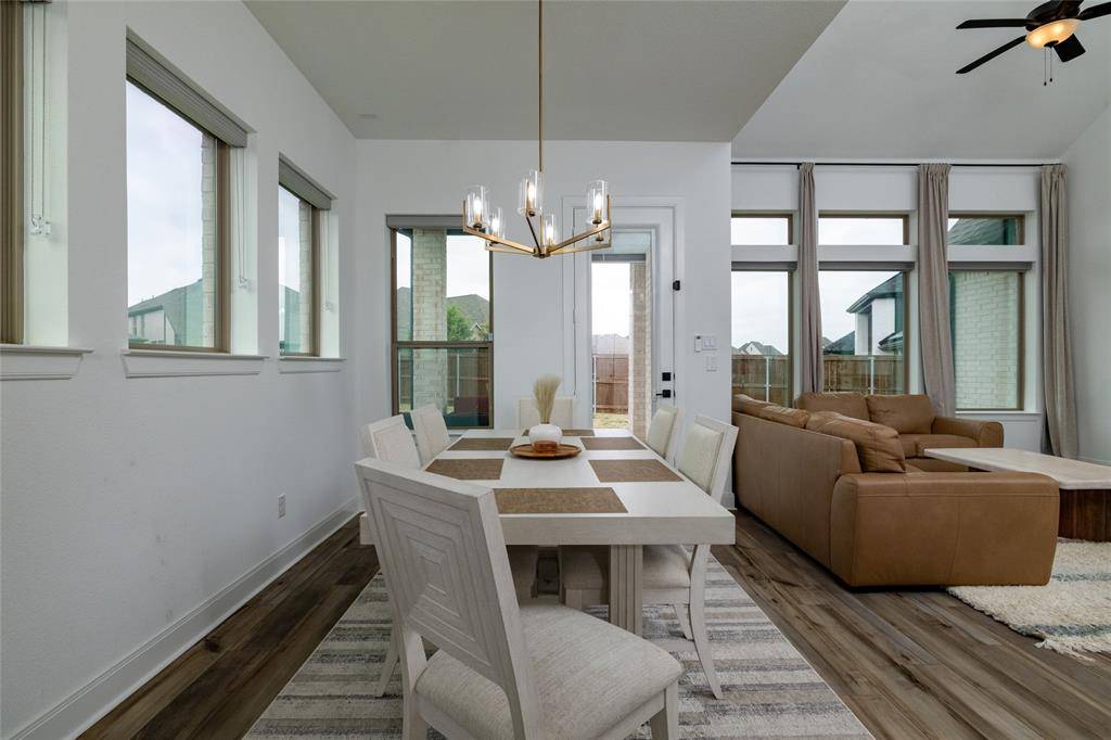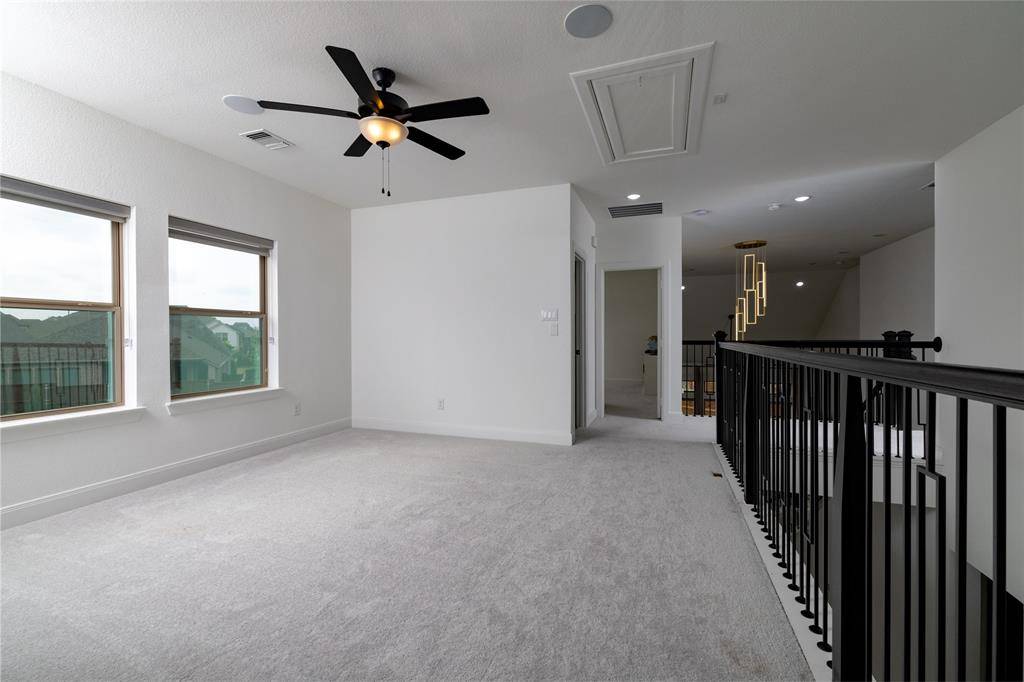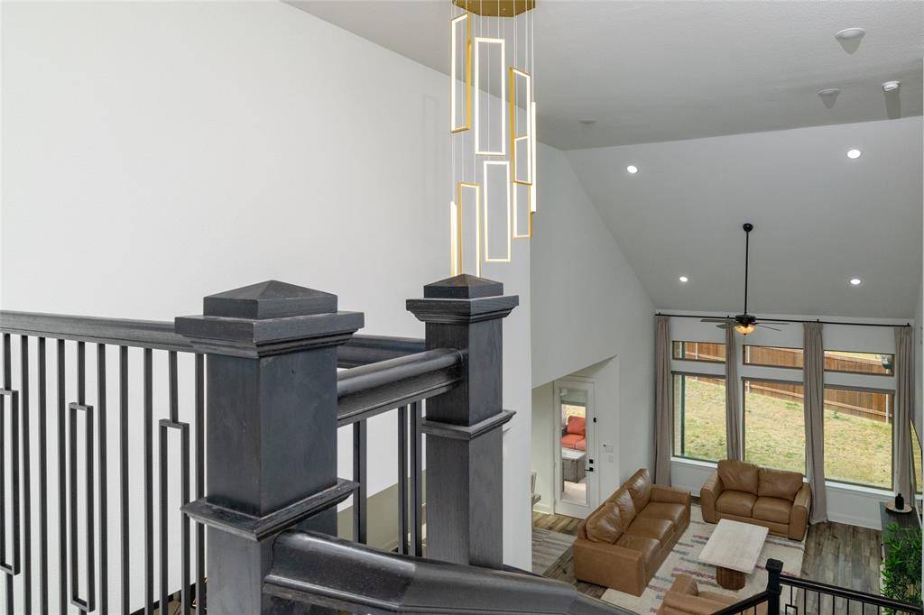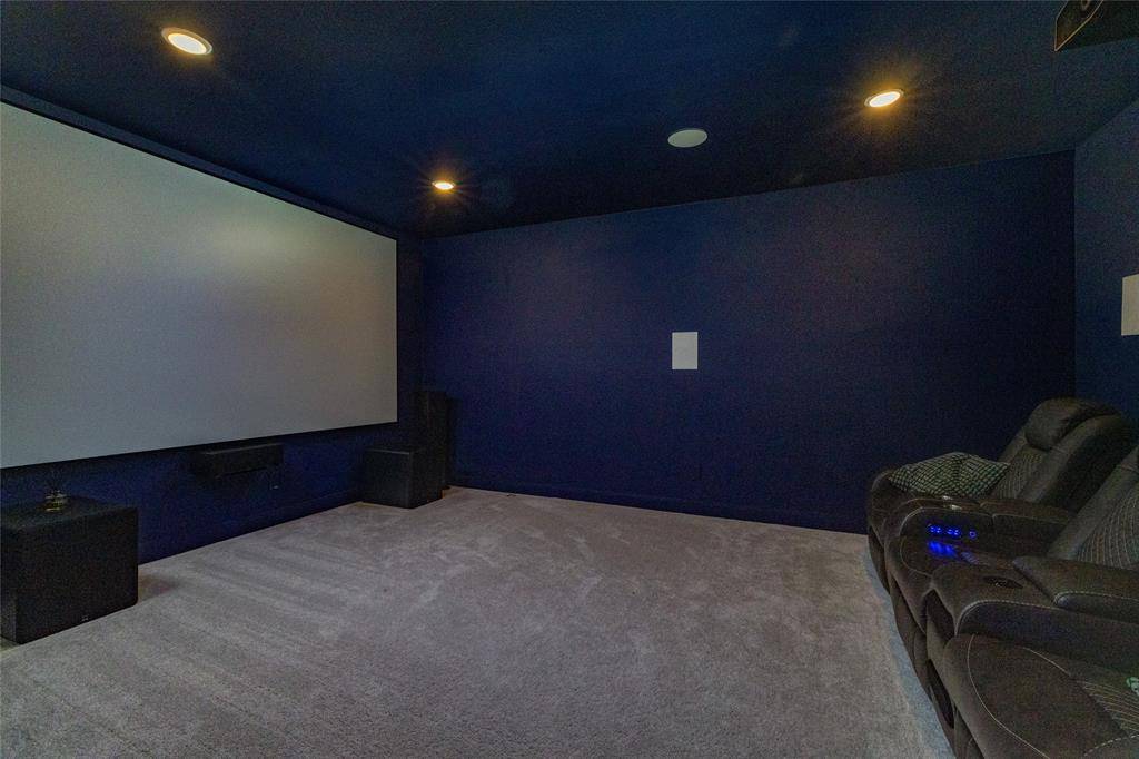 Perfectly positioned on one of the largest lots in the highly sought-after Mustang Lakes community, 2505 Runhappy Court delivers a rare combination of space, privacy, and elevated design in the heart of Celina. Spanning over 3,400 square feet, this 4-bedroom, 4.5-bath home immediately stands out with its commanding presence and thoughtfully curated finishes, offering a level of detail and character that's hard to replicate. Inside, you'll find a seamless blend of luxury upgrades and livability, highlighted by unique design elements and high-end upgrades like built in speakers in the kitchen, master bath, game room and patio which creates a truly one-of-a-kind feel throughout. Built for both entertaining and everyday enjoyment, with 18 foot ceilings with a fully upgraded home theater is a true showpiece—designed to deliver an immersive, cinematic experience without ever leaving home. It's the perfect setting for hosting guests or unwinding in style. Step outside and experience the advantage of one of the neighborhood's larger homesites, providing endless potential for outdoor living, entertaining, or simply enjoying the added space and privacy that sets this property apart. Residents of Mustang Lakes enjoy a lifestyle that's second to none, with resort-style amenities including multiple pools, a state-of-the-art fitness center, scenic trails, and a strong sense of community that continues to make this one of Celina's most desirable places to live.