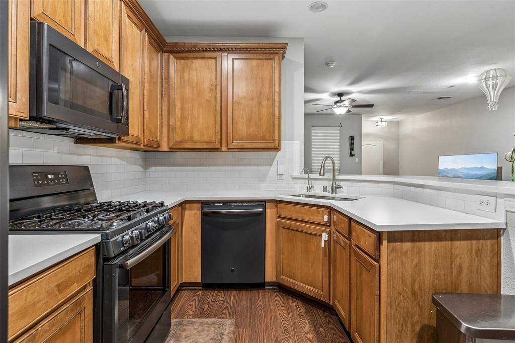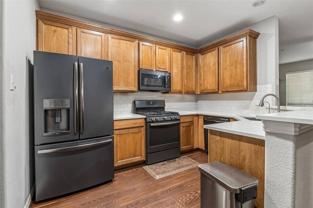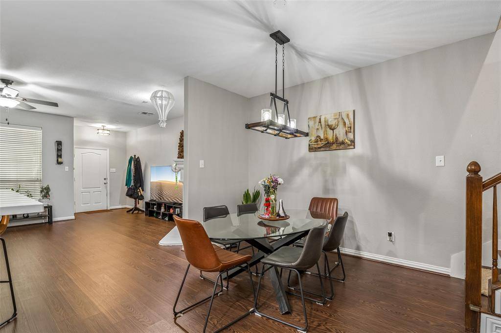 Beautiful townhome filled with thoughtful upgrades and stylish finishes throughout! This inviting home features rich wood flooring, reverse osmosis drinking water, and convenient rack shelving in the garage for added storage. Exceptional curb appeal shines with a charming stone façade, an upstairs balcony, and a private front patio with wrought iron fencing—perfect for enjoying the outdoors. One of the the most beautiful units and is perfectly located within a few steps of the Park which leads to the pool area. Inside, the open-concept floorplan is bathed in natural light, creating a bright and welcoming atmosphere. The spacious living and dining areas flow seamlessly into a stunning kitchen equipped with a gas cooktop, abundant cabinetry, and generous counter space—ideal for both everyday living and entertaining. The oversized walk-in closet provides ample storage, while the well-appointed laundry room includes a drip-dry area, space for a full-size side-by-side washer and dryer, and built-in cabinets for added convenience. An attached two-car garage offers security, storage, and ease of access. Residents enjoy a vibrant community with resort-style amenities including a pool, clubhouse, and scenic jogging paths. Ideally located with quick access to major roadways, top-rated schools, and a variety of nearby shopping and dining options, this home truly has it all! Seller offering a $2,500 concession! Schedule a private showing today and don't miss this incredible, unique opportunity!