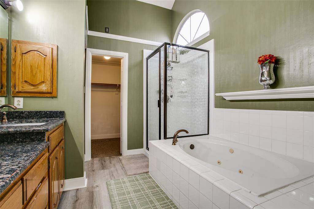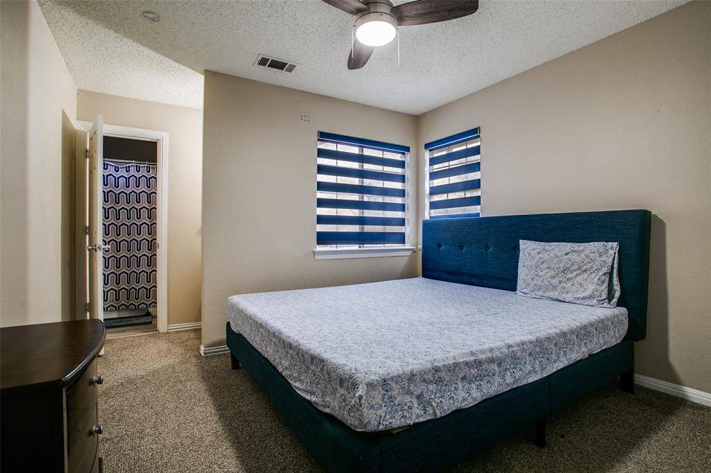 Move-in ready, two story, 3 bedroom 2 bath patio home zoned for A rated Coppell ISD. Located just a few minutes from 635 & George Bush work, play & entertainment are all just around the corner. Enter into a grand open living space with vaulted two story ceilings and floor to ceiling picture windows out to the enclosed yard. The living room has a built in dry bar and a see thru fireplace to the flex room. The flex room space is nestled behind the living room and makes a great office, playroom and more. Functional kitchen with lots of cabinets and countertop space for working. Kitchen features wood floors, painted cabinets and built in stainless steel appliances. Two distinct dining spaces offer versatile space for both entertaining and daily life. All three bedrooms are located on the second floor and feature energy saving ceiling fans & trendy window coverings. Additional loft space between the bedrooms provides extra living space. The primary suite boasts a vaulted ceiling and balconet over looking the living room as well as an en suite bathroom featuring dual vanities, standing shower and jetted garden tub. Quiet and private backyard with paver patio pad, full board on board privacy fence, mature landscaping and beautiful shade trees.