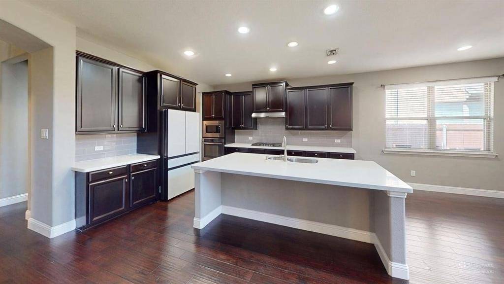 This spacious 2,878 square foot two-story home in The Colony offers 4 bedrooms and 3 bathrooms with a bright, open, and move-in ready layout designed for comfortable living. The well-equipped kitchen features a functional design with modern appliances including a refrigerator, dishwasher, microwave, and oven, along with a convenient breakfast bar that's perfect for casual dining or entertaining. Sun-filled living spaces create a warm and inviting atmosphere, highlighted by a cozy fireplace, a blend of wood and carpet flooring, and ceiling fans throughout for year-round comfort. Additional common areas provide flexibility for a formal dining space, home office, or secondary living area to suit your lifestyle needs. The primary suite serves as a private retreat with a spacious layout and walk-in closet, while the secondary bedrooms are well-sized and versatile, ideal for guests, family, or work-from-home setups, with bathrooms thoughtfully placed across both levels. A dedicated laundry area includes a washer and dryer, complemented by centralized AC for efficient whole-home comfort. The attached 2-car garage offers secure parking and additional storage space, making everyday living convenient. Step outside to enjoy a fenced backyard with a patio perfect for relaxing or entertaining.