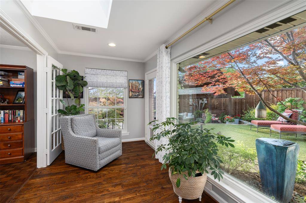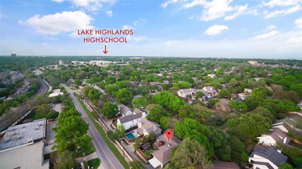 Tucked into a picturesque Lake Highlands neighborhood with mature specimen trees and impeccable landscaping, this beautifully updated single-level traditional home feeds to award-winning White Rock Elementary and offers exceptional functionality, including a two-stop elevator providing convenient access to the tuck-under garage. Designed for both entertaining and everyday living, the light-filled, open floor plan features four bedrooms, three full and one-half bathrooms, plus a private office. The spacious primary suite overlooks the turfed backyard and includes a walk-in closet and a luxurious ensuite bath with dual vanities, soaking tub, and separate rain shower. The versatile fourth bedroom can easily function as a gameroom, den, or oversized study area. The gourmet kitchen opens seamlessly to the living room and breakfast nook and is equipped with a four-burner gas range, stainless steel appliances, and ample workspace—ideal for gathering and hosting. Outdoors, lush landscaping surrounds both front and back living areas. A charming flagstone patio in the front yard invites neighborly conversation, while the backyard oasis features a covered outdoor living space complete with bench swing and tranquil fountain. Recent updates include installation of an elevator, Andersen windows, an 8-foot cedar fence, gutter leaf guards, 75-gallon water heater, window treatments, wallpapers, and fresh paint. This premier location provides quick access to White Rock Elementary, Lake Highlands High School, Lake Highlands Town Center, White Rock Lake, the Dallas Arboretum, Downtown Dallas, and both Love Field and DFW Airports—offering convenience, comfort, and timeless appeal.