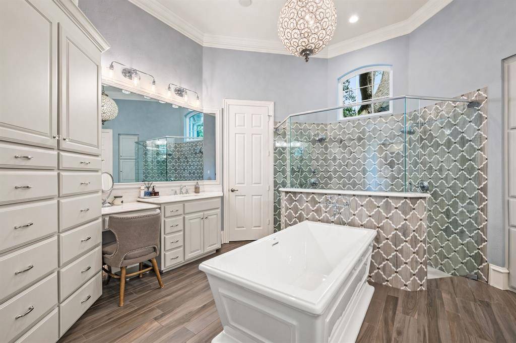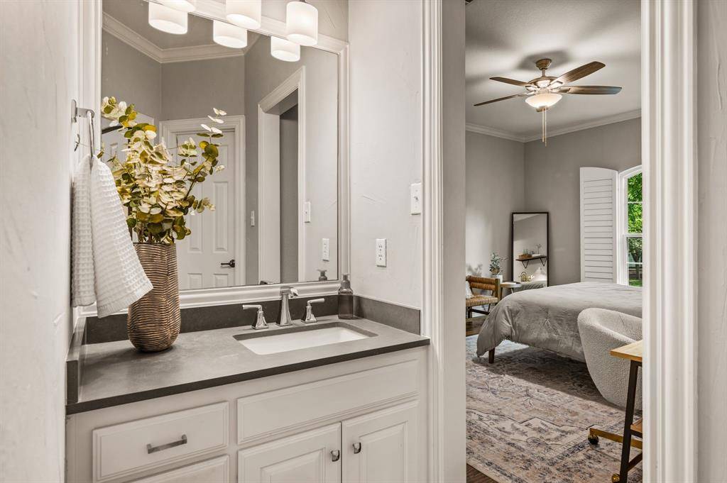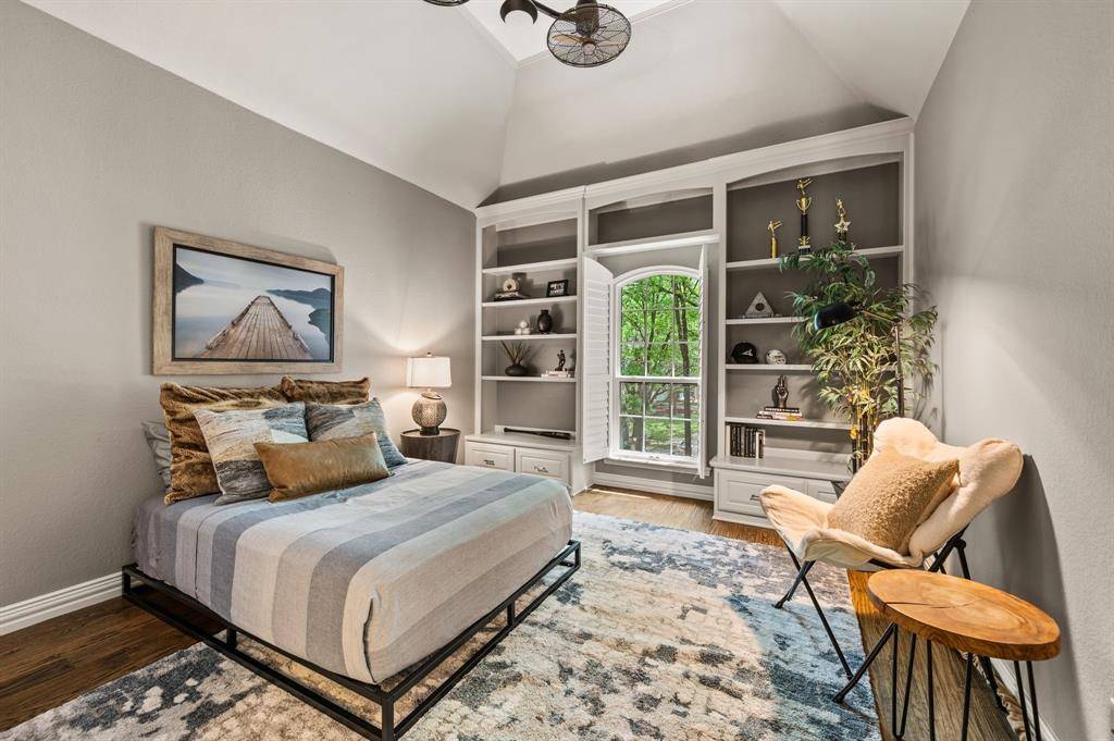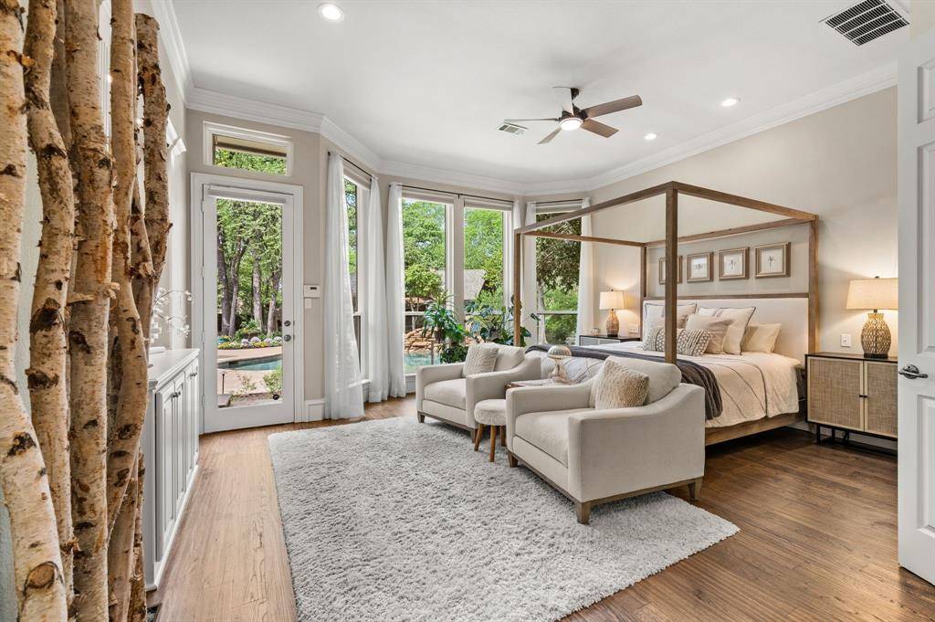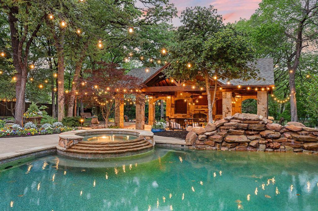 Upon entering the prestigious, guard-gated community of Monticello Estates in the heart of Southlake, tree-lined streets lead you to the end of a quiet cul-de-sac, where the neighborhood's premier oversized-lot awaits. Curb appeal wows with newly installed Traditions Windows, serene landscaping, and brand-new steel and glass double front doors which create a stunning first impression, beautifully blurring the line between indoors and out. Inside, the dramatic staircase is crowned by a striking new chandelier, while updated visual comfort lighting enhances the home with warmth and sophistication at every turn. Flanking the foyer, a richly color-drenched executive office and a designer-wallpapered dining room create elegant spaces for both work and entertaining. The residence offers five generously sized bedrooms, including two on the main level and three upstairs, all fully updated including quartz countertops, new lighting and tile. In addition, the home features an expansive game room with wet bar, a fully equipped fitness studio, and a spacious laundry suite with room for oversized appliances. At the heart of the home, the chef's kitchen is a true showpiece. New stunning Taj Mahal quartzite island anchors the space, complemented by soft cream cabinetry, an oversized double Wolf Range with six burners and an expansive griddle, a panel-ready Sub-Zero refrigerator, Wolf microwave, and double Blanco sinks. New dramatic two-story, double-paned windows frame sweeping views of the nearly three-quarter-acre grounds, showcasing a private, tree-filled and park like backyard oasis complete with a pool, spa, and expansive outdoor living space including new AOG grill, fully equipped kitchen, living and dining spaces. Other upgrades include mosquito mister system, Zosia sod, all new plumbing throughout home, a massive 4-car garage, extended driveway, and extra-high board on board fencing that provide added privacy and functionality. All this in the award-winning Carroll ISD!