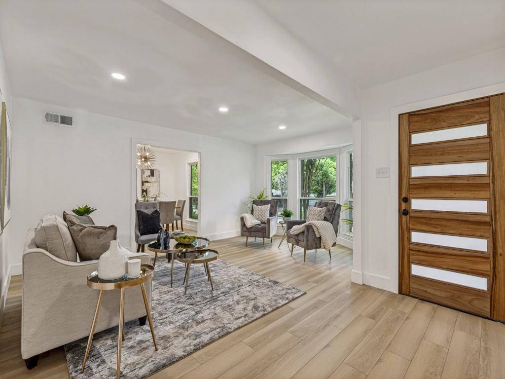 Rare opportunity in the heart of Heights Park — one of Richardson's most coveted pockets, where addresses seldom come available. This striking split-level contemporary is a true architectural standout, with a design so distinctive that only a handful like it exist in all of DFW. Completely remodeled from top to bottom, the home presents a fresh, modern aesthetic throughout with all-new flooring, designer fixtures, an updated kitchen, and two fully renovated baths.