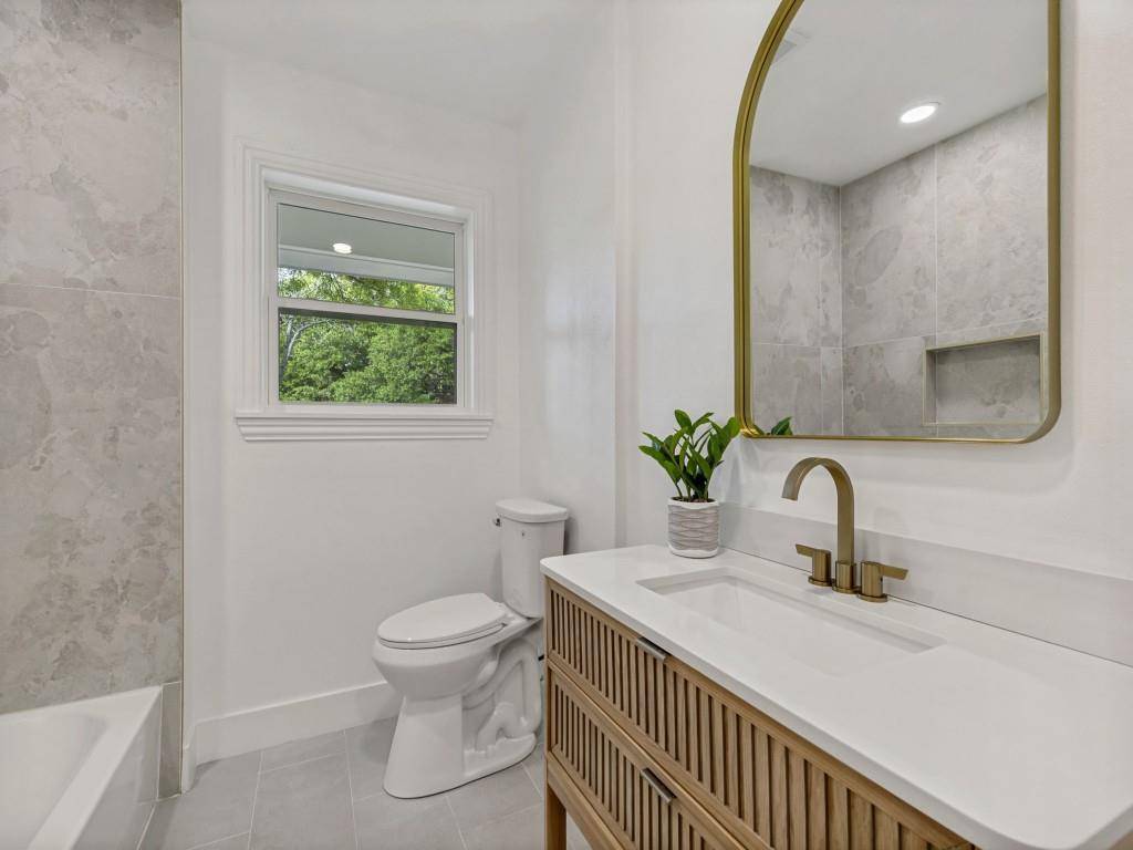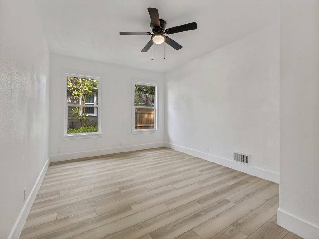 The thoughtful floor plan created by the split-level layout delivers natural separation of spaces — ideal for both everyday living and entertaining. One of the guest bedrooms opens to a private balcony overlooking the front yard, adding a charming and unexpected touch. The backyard is enormous, offering unlimited potential for outdoor living, play, or future expansion.