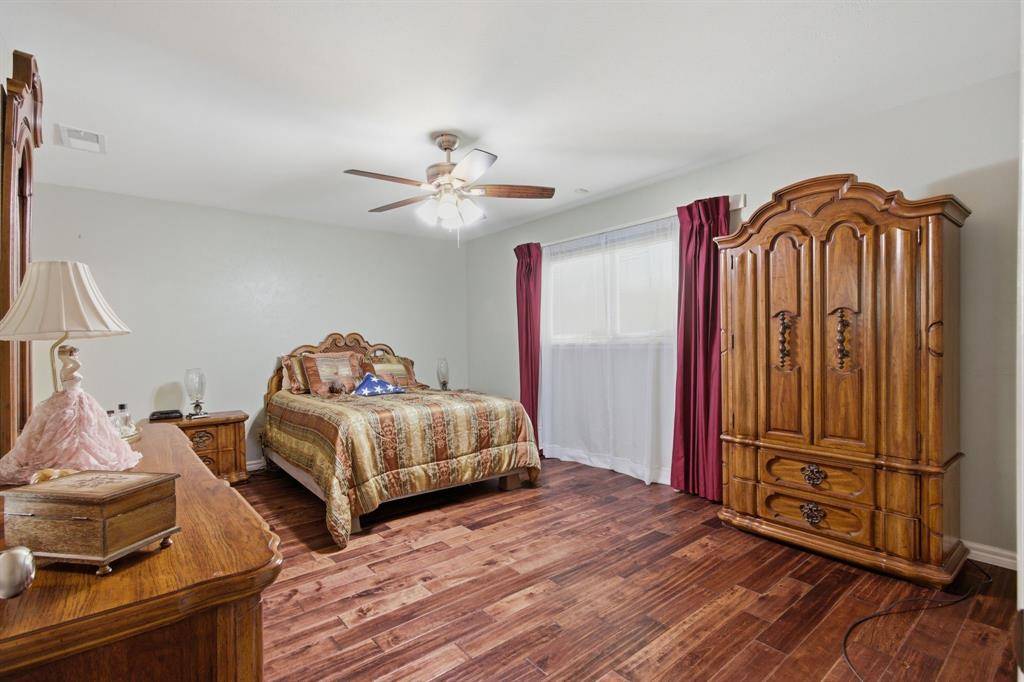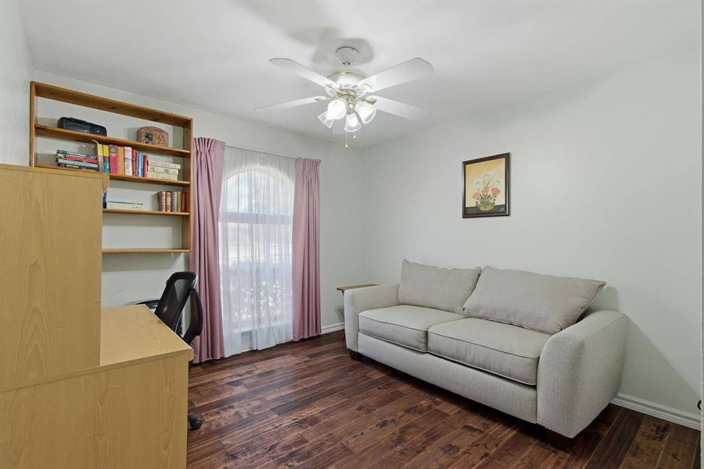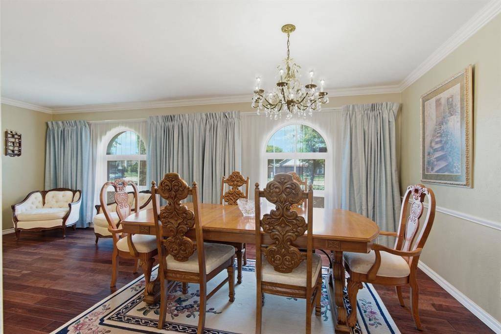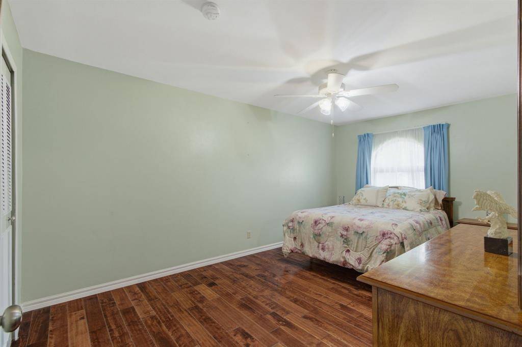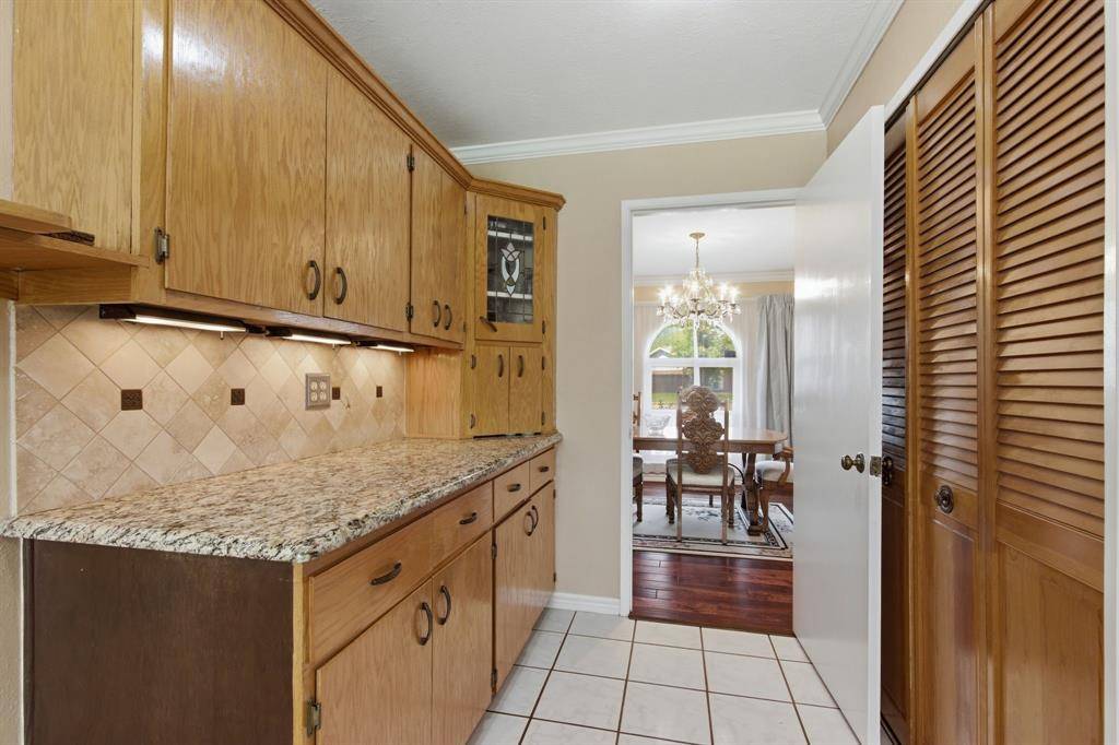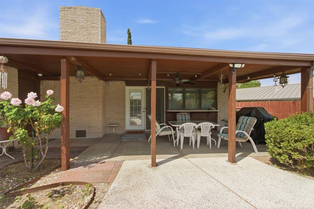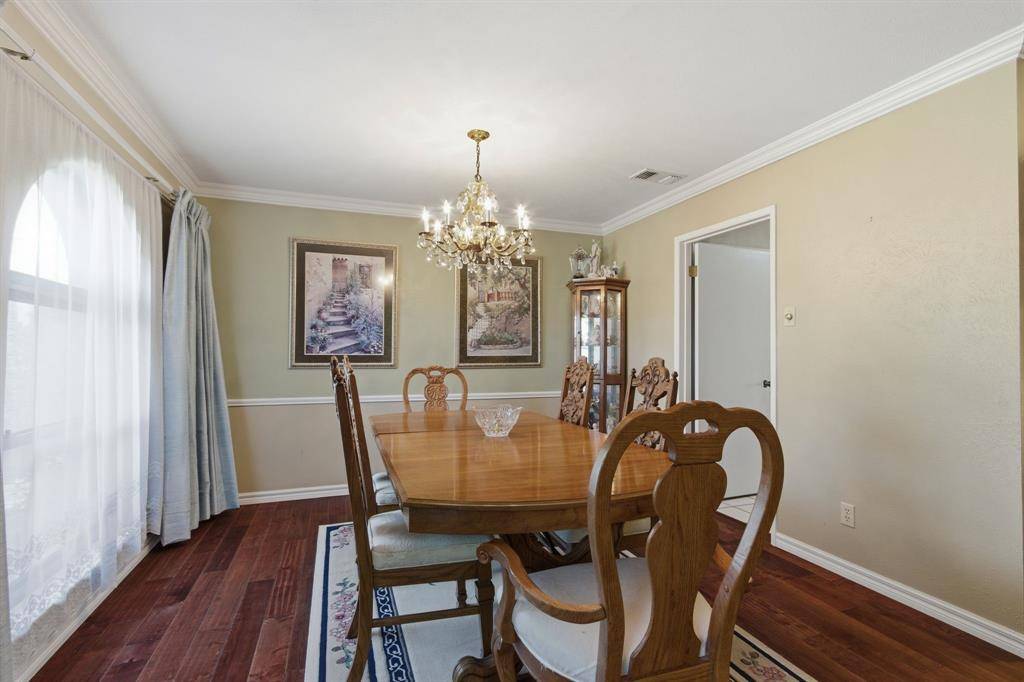 Welcome to this beautifully maintained home nestled on an oversized, pie-shaped 0.346-acre lot in the desirable Woodlake Subdivision! Designed for both comfort and entertaining, this property features a stunning backyard retreat complete with a sparkling swimming pool, recently repaired with updated coping and tile, and professionally maintained by a pool service. Enjoy relaxing or hosting guests under the covered outdoor living area, with plenty of additional space including a large detached shed. Inside, the home offers 3 bedrooms and 2 baths with a functional and inviting layout. A front living room and adjacent dining area greet you upon entry, perfect for more formal gatherings. The spacious family room features a cozy fireplace with hearth as its focal point and opens seamlessly to the kitchen—ideal for everyday living and entertaining. The kitchen is well-equipped with a gas cooktop, microwave, Bosch dishwasher, and refrigerator, along with ample space and windows that provide beautiful views of the backyard oasis. Throughout the home, you'll find hard surface flooring, including rich hardwoods and tile, offering both style and easy maintenance. This home truly combines indoor comfort with exceptional outdoor living—perfect for enjoying those hot Texas summers!