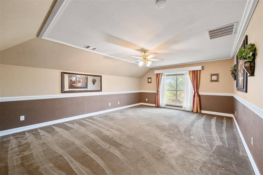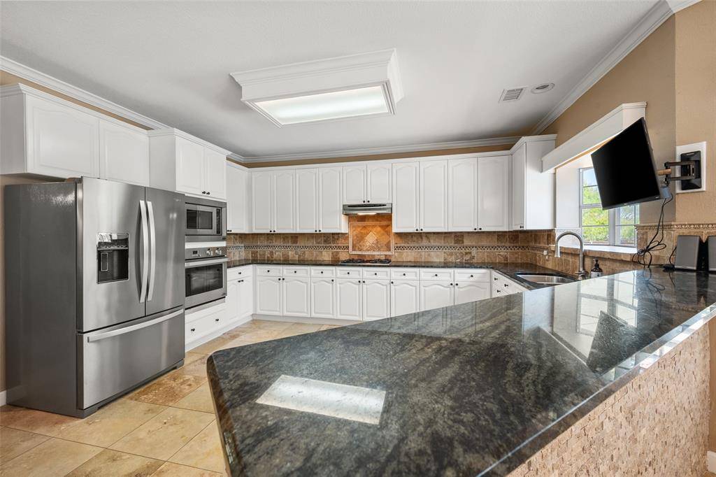 The gourmet kitchen impresses with high-end appliances, granite countertops, and custom cabinetry—perfect for culinary enthusiasts and entertainers alike. A spacious upstairs bonus room provides endless versatility, complemented by an expansive, well-lit wrap-around storage area.