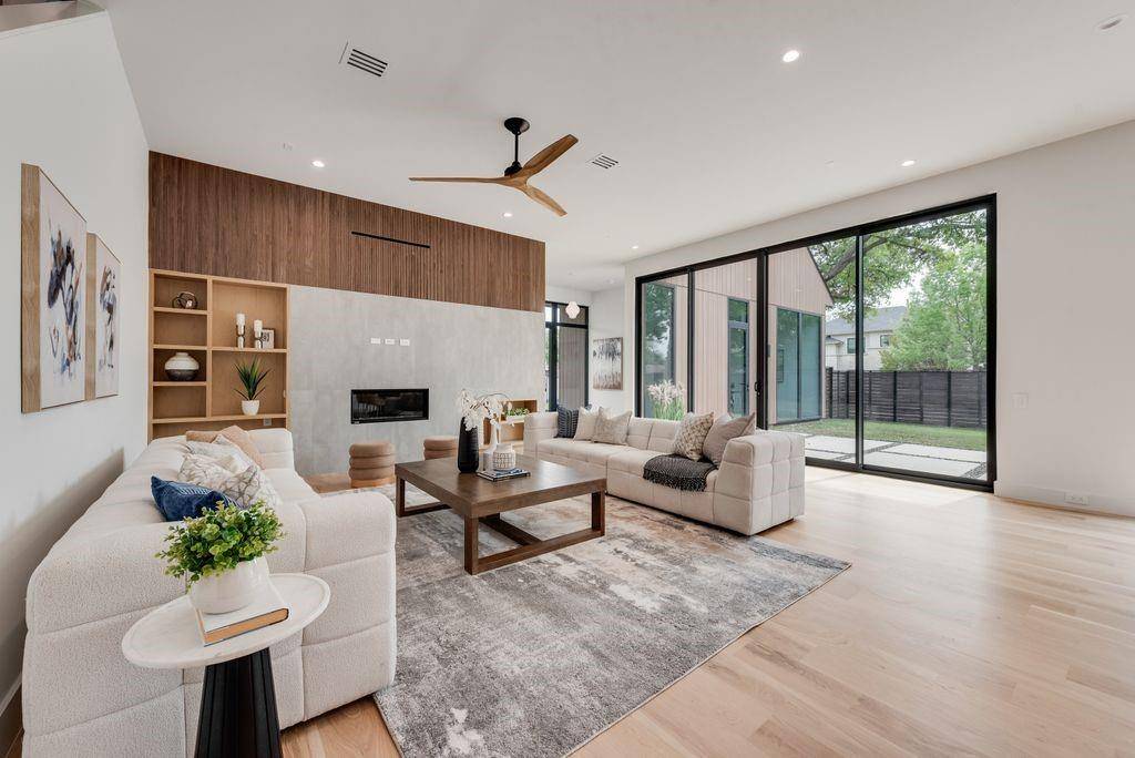 A striking new construction home by award-winning team Lardner Custom Homes and architect Far+Dang, this modern residence blends architectural design with everyday livability. Set on a magnificent, oversized, tree-filled lot in Midway Hollow, the home is framed by mature oak trees and thoughtfully designed landscaping, creating a private and inviting setting.