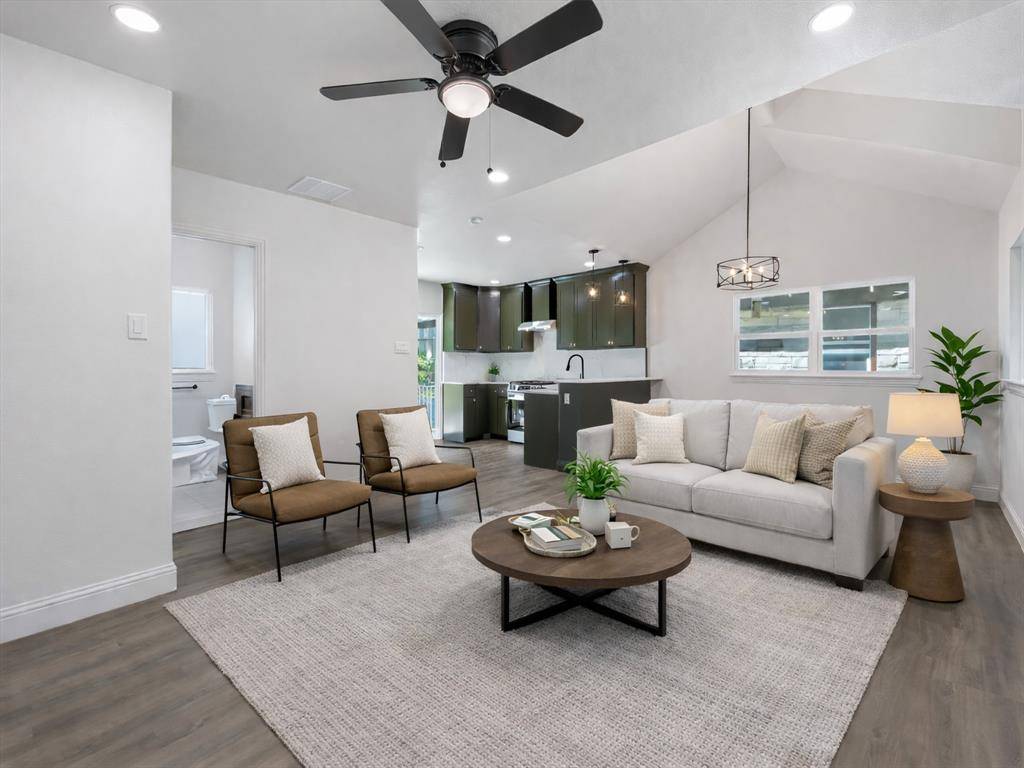 Inside, the open living area offers lots of natural light, creating a bright and inviting ambiance. Low-maintenance laminate flooring flows throughout the home, delivering a polished look with everyday practicality. The kitchen features a gas range and elegant fixtures, making it a functional and inspiring space for cooking and gathering.