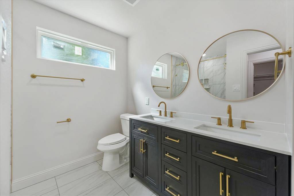 The primary suite serves as a true retreat, complete with a beautiful en-suite bathroom featuring a dual vanity and a custom walk-in closet designed for effortless organization. A second bedroom and full bath provide comfortable space for guests or a home office.