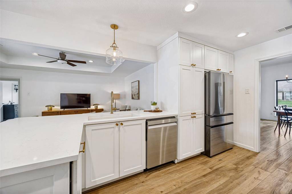 Located in Richardson's sought-after JJ Pearce neighborhood, 1313 Huntington Drive offers a rare combination of thoughtful updates, flexible living, and a walkable, high-demand location. This beautifully maintained 4-bedroom, 3-bath home has been extensively renovated with today's buyers in mind. The kitchen and all three bathrooms have been tastefully updated with designer finishes, including quartz countertops in the kitchen, marble countertops in the bathrooms, custom cabinetry, and updated tilework and fixtures that create a clean, cohesive, move-in ready feel. At the heart of the home, the eat-in kitchen features stainless steel appliances, a gas range with vent hood, a built-in coffee bar, generous pantry storage, and ample counter space with island seating. Inside, you'll find a light-filled, single-story layout with high ceilings and two spacious living and dining areas designed for everyday living and entertaining. The main living room is anchored by built-ins, wainscoting, and a fireplace, adding warmth and character. The split floorplan offers flexibility for a variety of lifestyles, including a private guest or in-law suite. A dedicated office opens to a secluded side yard, ideal for a quiet workspace or garden retreat. Outdoor living is just as inviting, with patio space in the front and backyard, enhanced by a board-on-board privacy fence. The painted brick exterior, updated windows, and striking wood and glass front door further elevate the home's curb appeal. Located blocks from Mohawk Elementary, JJ Pearce High School, and Mimosa Park, this established neighborhood is known for its strong sense of community and continued reinvestment. With convenient access to UTD, major medical and tech employers, and key commuter routes including US-75, the Dallas North Tollway, and President George Bush Turnpike, this home offers both lifestyle and long-term value. A rare opportunity to own a move-in ready home in one of Richardson's most desirable pockets.