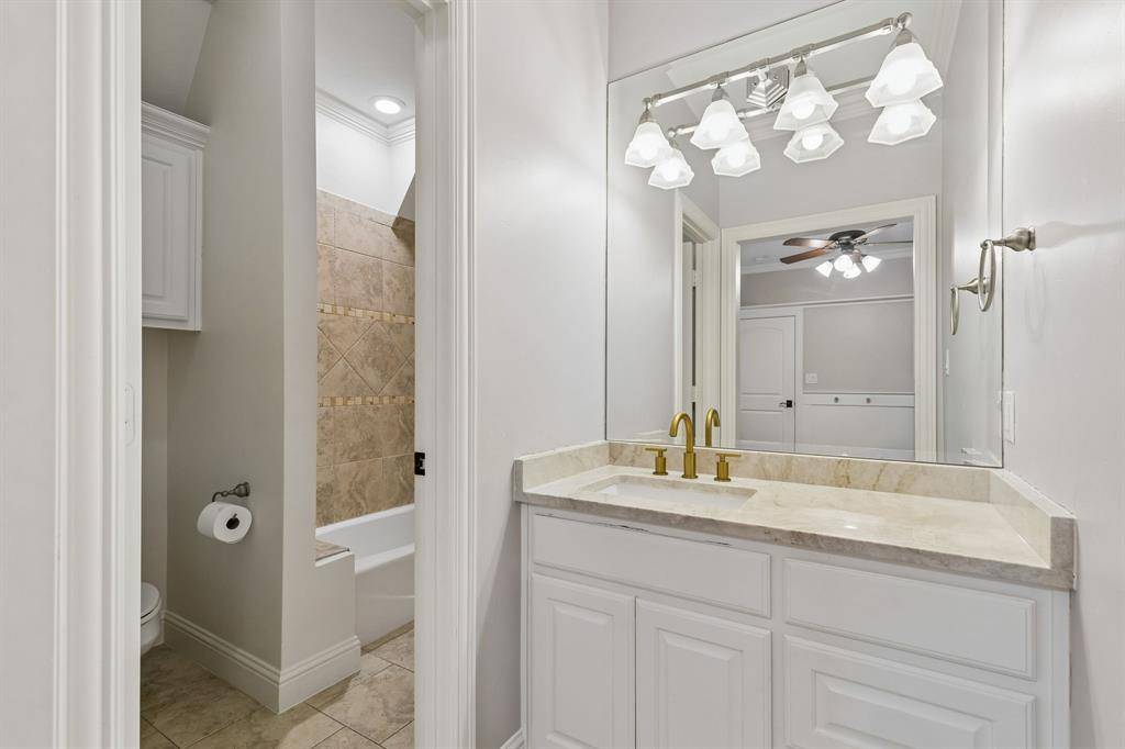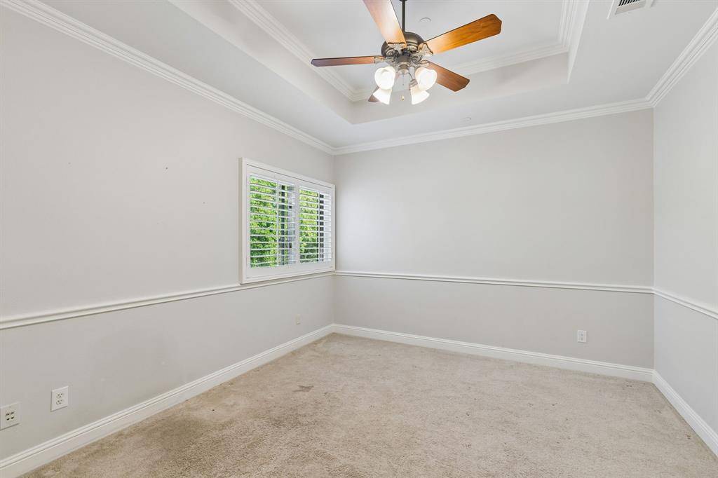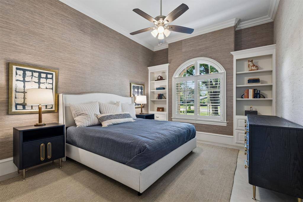 Updated two story home situated on a spacious .72 acre cul-de-sac lot, surrounded by mature trees and thoughtfully designed for comfort and functionality. The open floor plan features living room with views of the backyard, a private office, and a cozy family room with a fireplace. The main level includes a primary suite and a guest suite, making everyday living both convenient and practical. A downstairs guest bedroom features its own private entrance and en-suite bath. The primary features marble countertops, an oversized shower, soaking tub, and a custom designer walk-in closet.