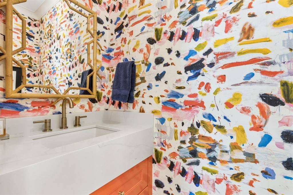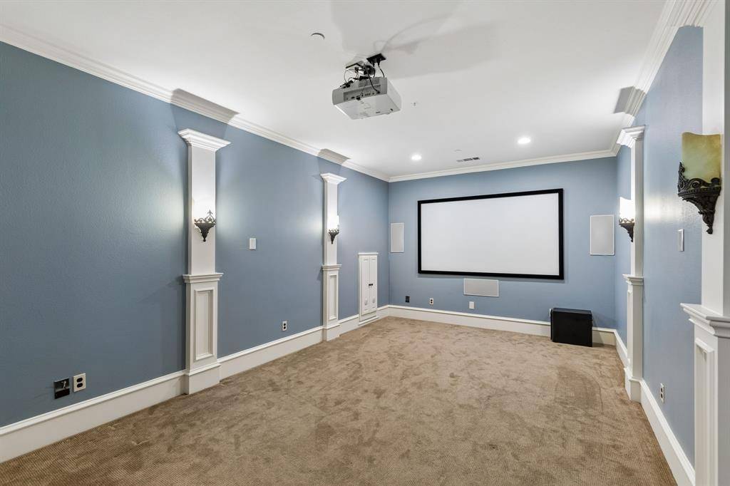 The kitchen has been recently updated with custom cabinetry, Wolf range, and built-in appliances. Bar area off the kitchen overlooking the counters has a second full size refrigerator and wine fridge- perfect for entertaining while overlooking the pool and oversized backyard. Upstairs offers three more bedrooms with two full baths, a spacious game room, and a dedicated media room providing plenty of space for family. Additional highlights include a three car garage with a porte-cochere.