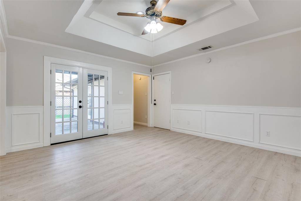 DON'T MISS OUT!! Sought after North Dallas location. Easy access to Dallas North Toll and George Bush. Single story with a spacious floor plan including 2 living areas and 2 dining areas. Wood burning fireplace with gas igniter. Barn door accents with other upgrades that separate this beautiful home from all the others. Updates include: granite counter tops in kitchen and bathrooms; ceramic tiled floors in kitchen and bathrooms; wet bar; plus more. Large open patio, also baby proofing cabinets and drawers. Close to shopping and restaurants.