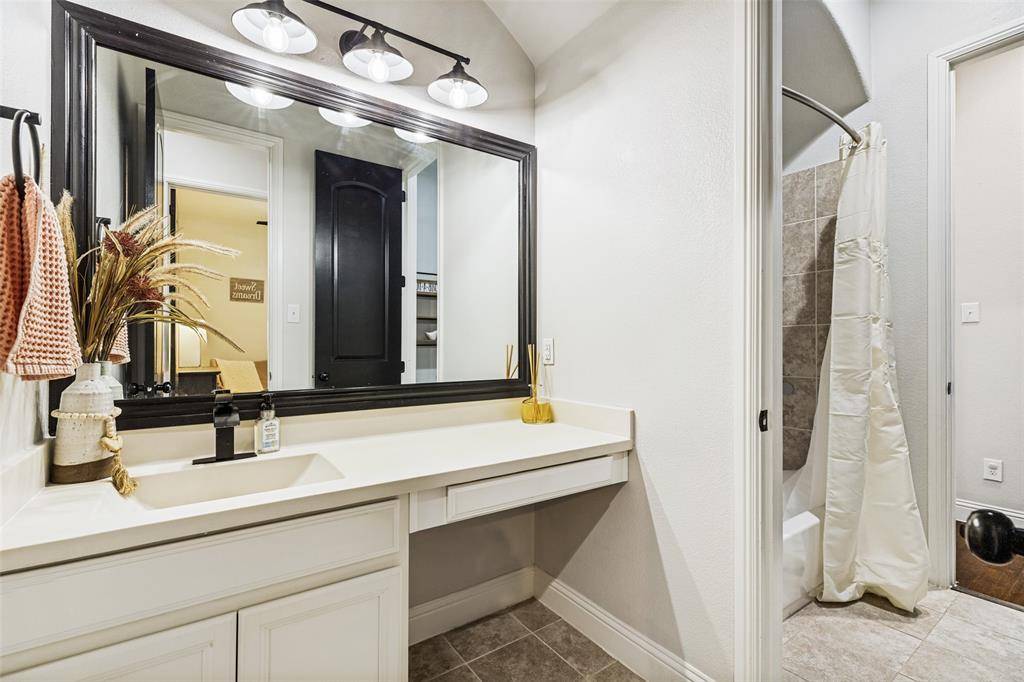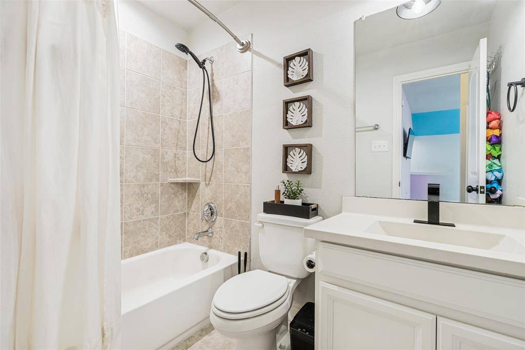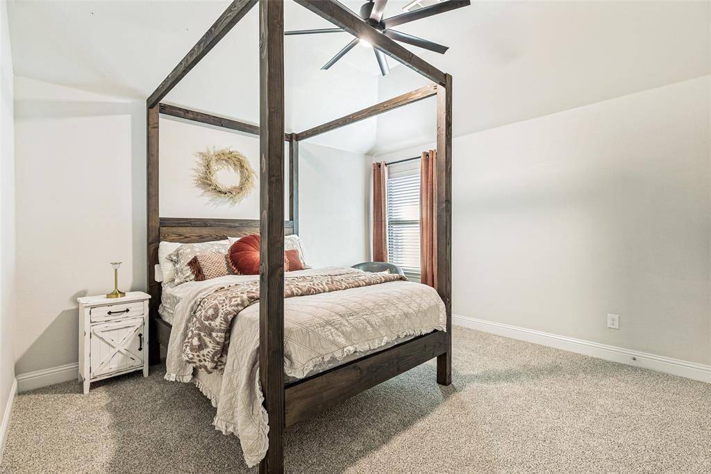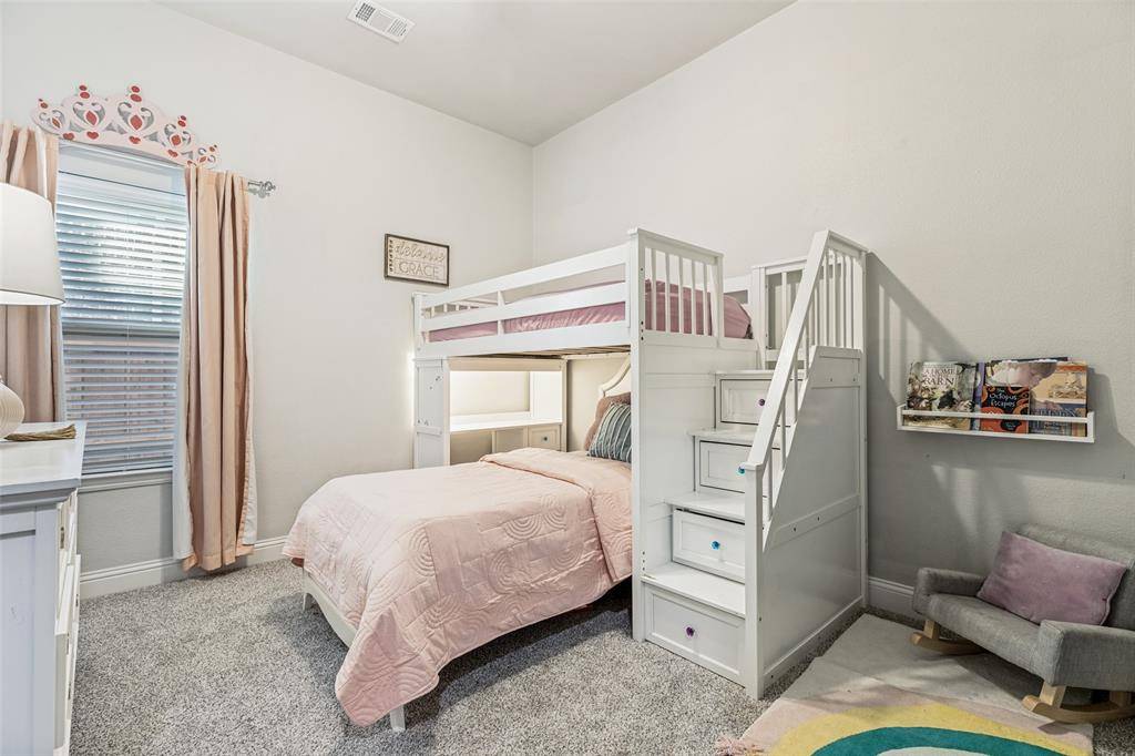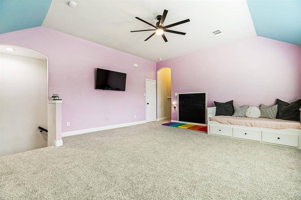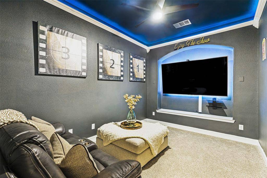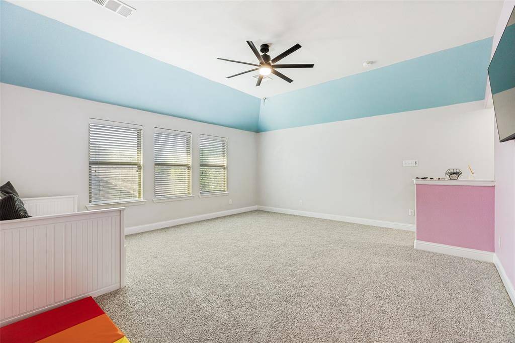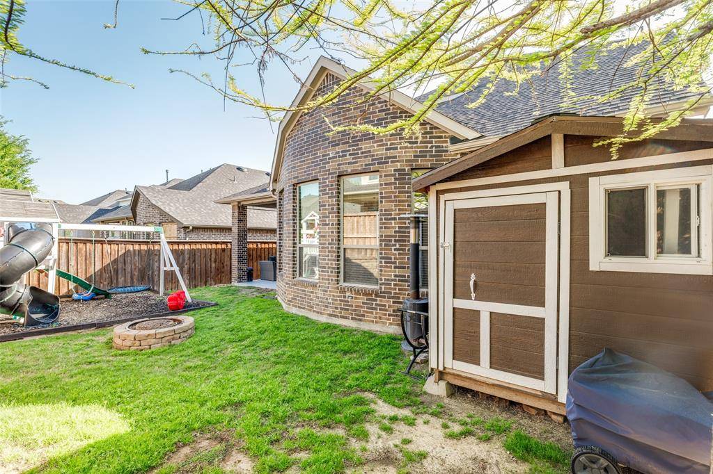 Welcome to this stunning two-story home nestled in the highly sought-after Trinity Falls community! Offering 4 spacious bedrooms and 3 full baths, this beautifully maintained home blends comfort, functionality, and style. Designed with versatility in mind, the thoughtfully laid-out floor plan features a private home office, a first-floor media room, and an expansive upstairs game room - perfect for work, relaxation, or entertaining. The open-concept living area is filled with natural light, creating a warm and inviting atmosphere ideal for everyday living and hosting guests. The oversized primary suite serves as a true retreat, complete with dual vanities, a garden tub, a separate walk-in shower, and a generous walk-in closet. Two secondary bedrooms on the main floor each offer walk-in closets and share a full bath, while upstairs you'll find a private fourth bedroom, full bath, and a large game room - ideal for guests or multigenerational living with its own mother-in-law suite feel. Step outside to a backyard built for enjoyment, featuring a covered patio, a kids' play set, and a storage shed for additional storage needs. Fresh paint and brand-new carpet throughout give the home a crisp, move-in ready feel. Conveniently located near shopping, dining, entertainment, top-rated schools, and exceptional community amenities, this home truly has it all!