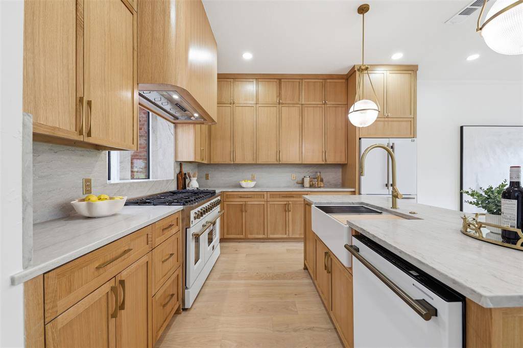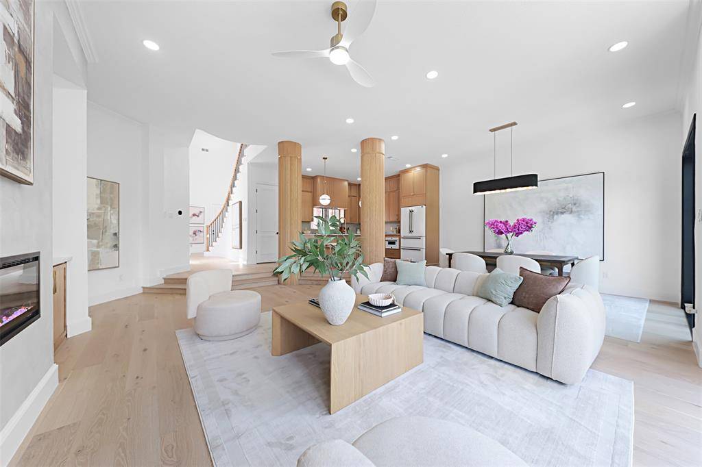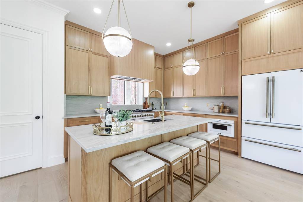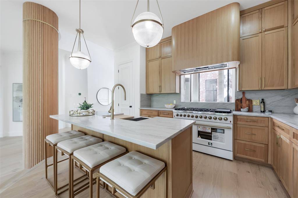 Inside, the home is defined by intentional design and elevated finishes, including wide-plank engineered hardwood flooring, smooth plaster-finished walls, and a warm, contemporary color palette throughout. The chef's kitchen serves as the heart of the home, appointed with rift-cut oak cabinetry, a high-end appliance package, and sophisticated designer details that seamlessly combine style and functionality.