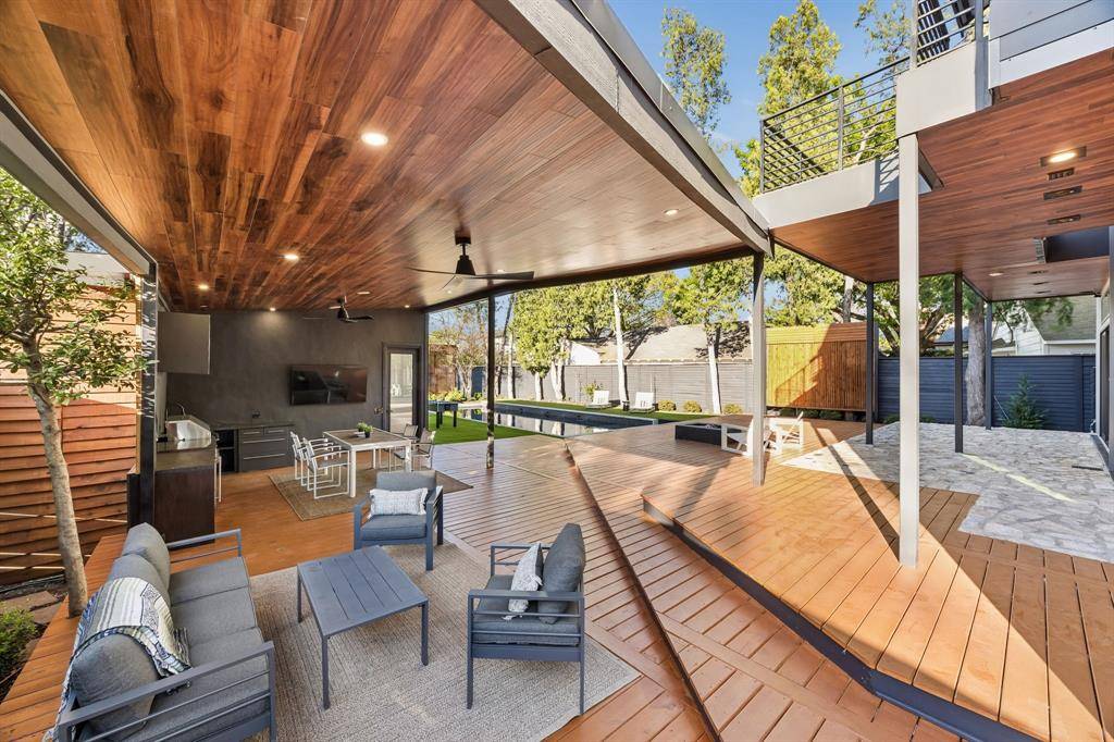Some homes are built. This one was considered. Set on a beautifully wooded .43 acre lot and moments from some of Dallas's most sought after private schools, including Episcopal School of Dallas, Ursuline Academy, Hockaday, and St. Mark's, this custom contemporary residence was designed around the way people actually live. How light moves through a room in the morning. How a kitchen becomes the center of a Saturday. How a backyard can feel like a private resort. A circular drive leads to a gated front courtyard where a stone walkway and water feature set the tone before you ever reach the front door. Inside, soaring ceilings and walls of glass pull the outdoors in, while bleached red oak floors carry you effortlessly from room to room. The main living area anchors around a fireplace and a fully appointed wet bar complete with a Sub-Zero ice maker and Thermador wine refrigerator, the kind of space that draws people in and keeps them there. The kitchen is serious. A Miele gas range with dual ovens, a Gaggenau steamer, Viking refrigeration, and dual Asko dishwashers give it the bones of a professional kitchen. A generous walk in pantry and mudroom keep daily life organized behind the scenes. Step outside and the saltwater pool, outdoor shower, and full cabana make a case for never leaving home. The outdoor kitchen is fully equipped with a built in grill, ice maker, beverage refrigerator, and sink, so warm weather entertaining requires no trips back inside. Whether it is a quiet Tuesday or a dinner party for thirty, the space adapts without effort.Upstairs, a game room with fireplace and additional ensuite bedrooms round out the layout, while the primary suite earns its title. A private balcony, spa bath with soaking tub, walk in shower, dual vanities, separate closets, and separate water closets. A first floor guest suite, climate controlled wine storage, whole home generator, and a pier and beam foundation complete a home that was built with genuine intention.
