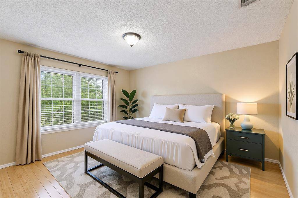 Tucked into the established and highly desirable Oak Hills community, this 5-bedroom residence delivers the perfect blend of elevated design, smart efficiency, and effortless livability. From the moment you step inside, you're greeted by a seamless flow of rich wood flooring, completely carpet free, paired with modern lighting and thoughtfully updated finishes that create a clean, sophisticated feel throughout. Designed for both everyday living and entertaining, the home offers multiple flexible spaces to fit your lifestyle, including a spacious upstairs game room complete with a custom built in bar, ideal for movie nights, hosting, or game-day gatherings. The heart of the home, a beautifully refreshed kitchen, features granite countertops, SS appliances, and abundant cabinetry, all opening naturally to the main living and dining areas. The primary suite is a true retreat, offering private balcony access for quiet mornings or evening unwinding, along with a spa-inspired bath showcasing a soaking tub, frameless glass shower, and dual sinks. Generously sized secondary bedrooms, provide comfort and versatility for family, guests, or a dedicated home office. What truly sets this home apart is its commitment to efficiency and low-maintenance living. An owned solar panel system delivers significant long-term energy savings, complemented by energy-efficient windows, radiant barrier insulation + LED lighting. Step outside and discover a backyard designed for enjoyment without the upkeep, featuring extensive pavestone hardscaping, multiple covered gathering areas including a steel gazebo and BBQ pavilion, a screened-in porch, and beautifully integrated lighting that enhances the space day and night. Whether you're hosting friends or enjoying a quiet evening, this outdoor setting is built to impress. An oversized two-car garage with insulated doors and a dedicated workshop or hobby space adds even more functionality. Great Location and move in ready!