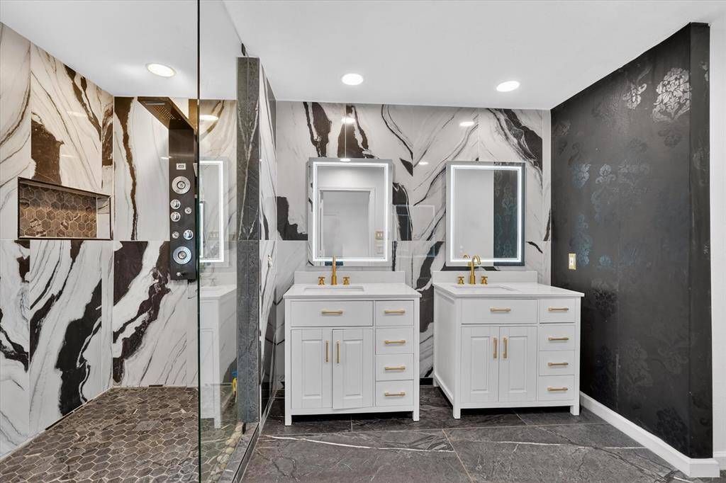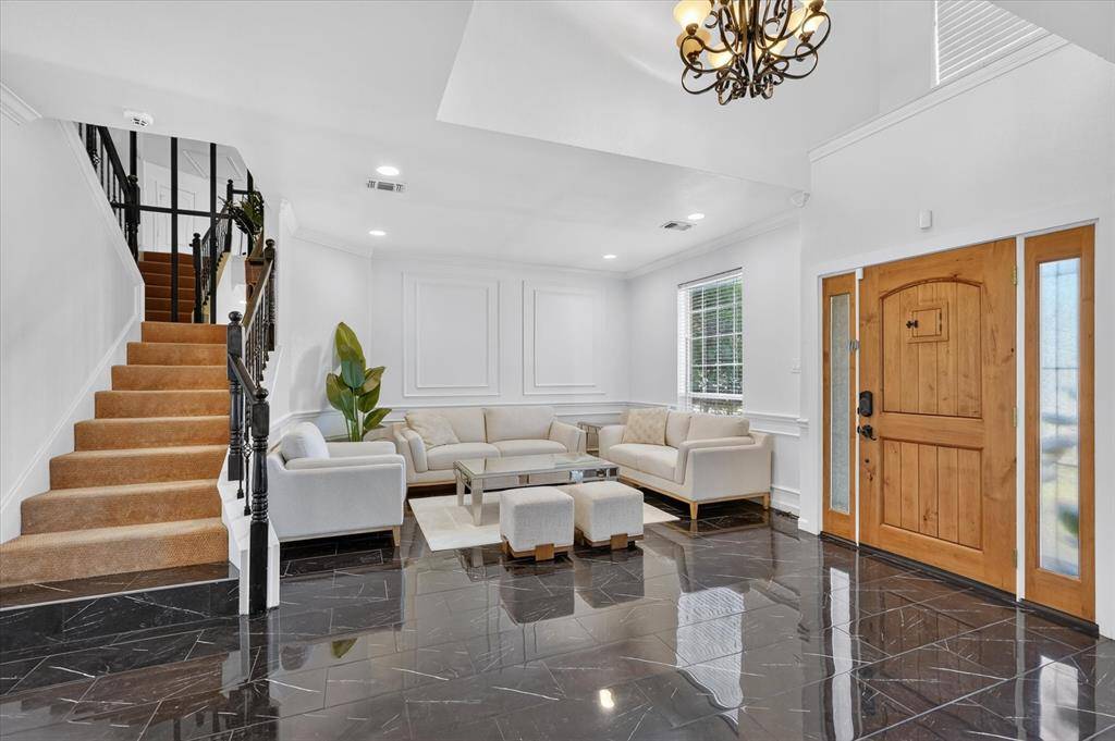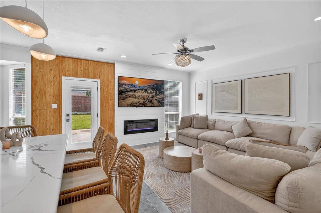 Discover a residence where architectural precision meets sophisticated comfort in this impeccably curated 4-bedroom home. Upon entry, the grand foyer makes an immediate impression with oversized designer tile flooring that flows through the formal living and dining rooms—both featuring new wall design finishes—and into a gourmet kitchen fully transformed with a custom island, quartz countertops, and premium tile. The heart of the home features a contemporary electric fireplace framed by designer accent walls, while the primary suite serves as a true sanctuary following a total remodel of the inspired bathroom. Every secondary bathroom and guest bathroom has been meticulously updated with new flooring, paint, and cabinetry to ensure a consistent standard of luxury.