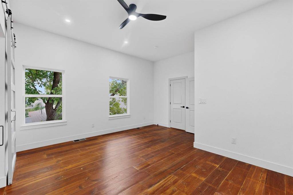 Upstairs, you'll find beautifully repurposed 100-year-old wood, thoughtfully restored and installed as flooring, adding warmth, character, and a one-of-a-kind historic touch. A secondary bedroom features its own private ensuite bathroom, offering comfort and privacy for guests or family.