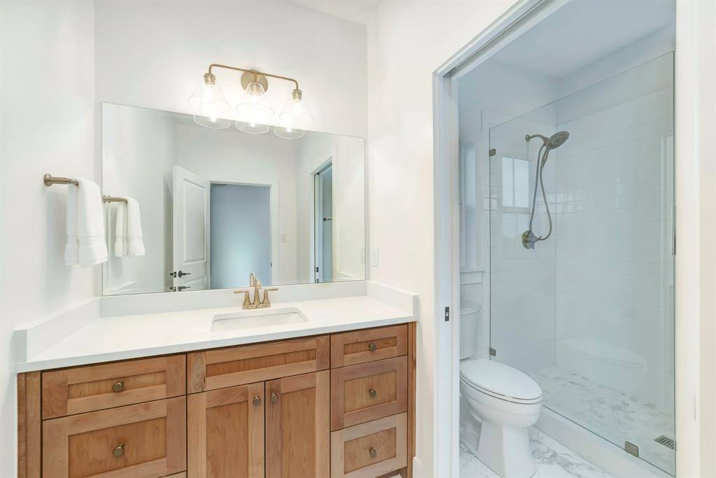 This home features hardwood floors, quartz countertops, marble accents, and quality finishes throughout. The kitchen is spacious and functional, with a large island, ample cabinetry, and KitchenAid appliances, perfect for everyday living and entertaining.