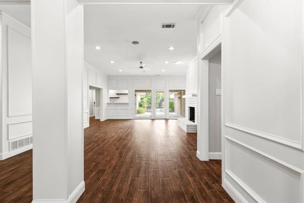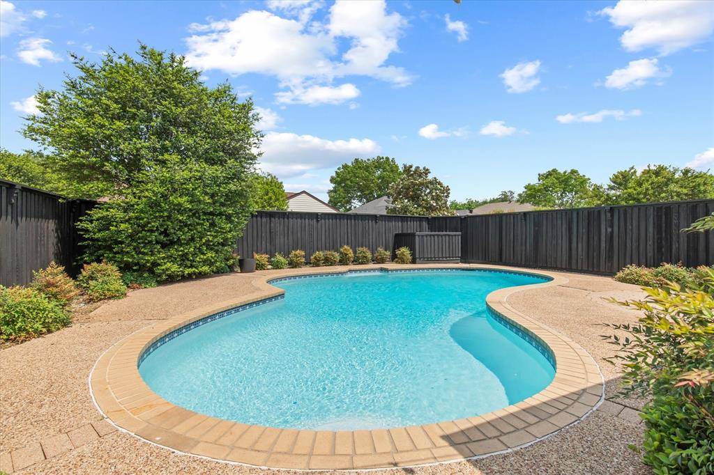 Discover this beautifully updated single-story ranch home nestled in Country Brook within desirable Plano ISD. Step inside to find gorgeous wood-look tile floors flowing seamlessly throughout the main living areas. The spacious family room showcases a cozy gas fireplace and painted wood paneling. An elegant formal dining room with wainscoting offers the perfect space for entertaining and provides easy access to the kitchen. The gourmet kitchen is sure to impress, featuring GE stainless steel appliances, dual ovens, a 5-burner gas cook-top, Quartz counter-tops, and a stainless steel farmhouse sink. The adjacent breakfast room leads into a versatile second living area, ideal as a game room, complete with a wet bar. The primary suite is thoughtfully separated from the secondary bedrooms, providing added privacy. Its ensuite bath is a true retreat, featuring dual sinks with Quartz counter-tops, a relaxing freestanding soaking tub, a glass-enclosed shower with dual showerheads, and a walk-in closet. Two additional bedrooms share an updated Jack-and-Jill bathroom with dual sinks, Quartz counter-tops, and a beautifully tiled shower. Step outside to enjoy the private backyard, complete with a covered patio, sparkling swimming pool, and ample green space. For added convenience, the landlord covers pool and lawn maintenance. Ideally located within walking distance to Country Brook fishing pond with a scenic walking trail and offering easy highway access, commuting to Dallas is a breeze. Pets are accepted on a case by case basis. Size and breed restrictions.