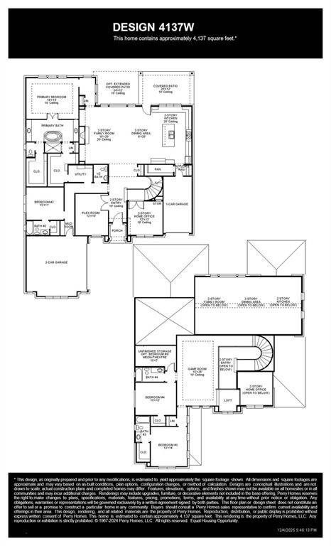 The front porch opens into a two-story entryway. French doors open into a flex room right off the entry. Adjacent to the flex room and off the curved staircase is the home office that boasts tall ceilings and storage. As you enter the family room you are greeted by a fireplace, a two-story ceiling and wall of windows. The connecting dining area allows access to the backyard covered patio. The kitchen boasts ample counter space, an island with built-in seating, a butler's pantry, walk-in pantry, and access to the split one-car garage. The primary bedroom boasts ample natural light from the wall of windows. Double doors lead into the primary bathroom which boasts a garden tub, glass enclosed shower, dual vanities, two walk-in closets, and dual access to the utility room for added convenience. Upstairs on the second level is an oversized game room with a loft area. Secondary bedrooms and bathrooms along with additional storage space complete the upstairs. A private guest suite with full bathroom has access to the mud room off of the two-car garage.