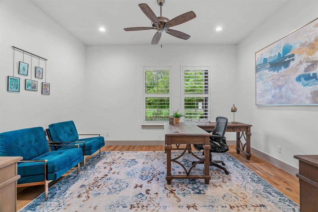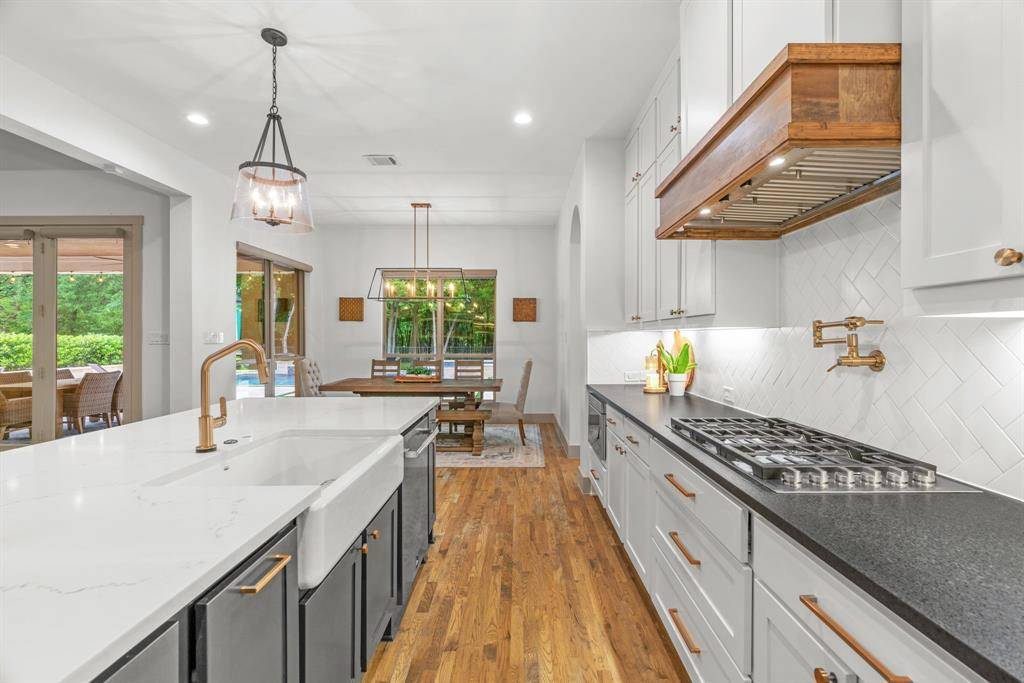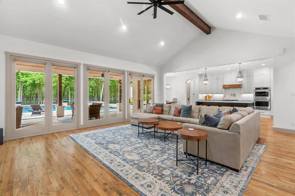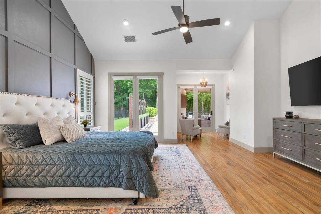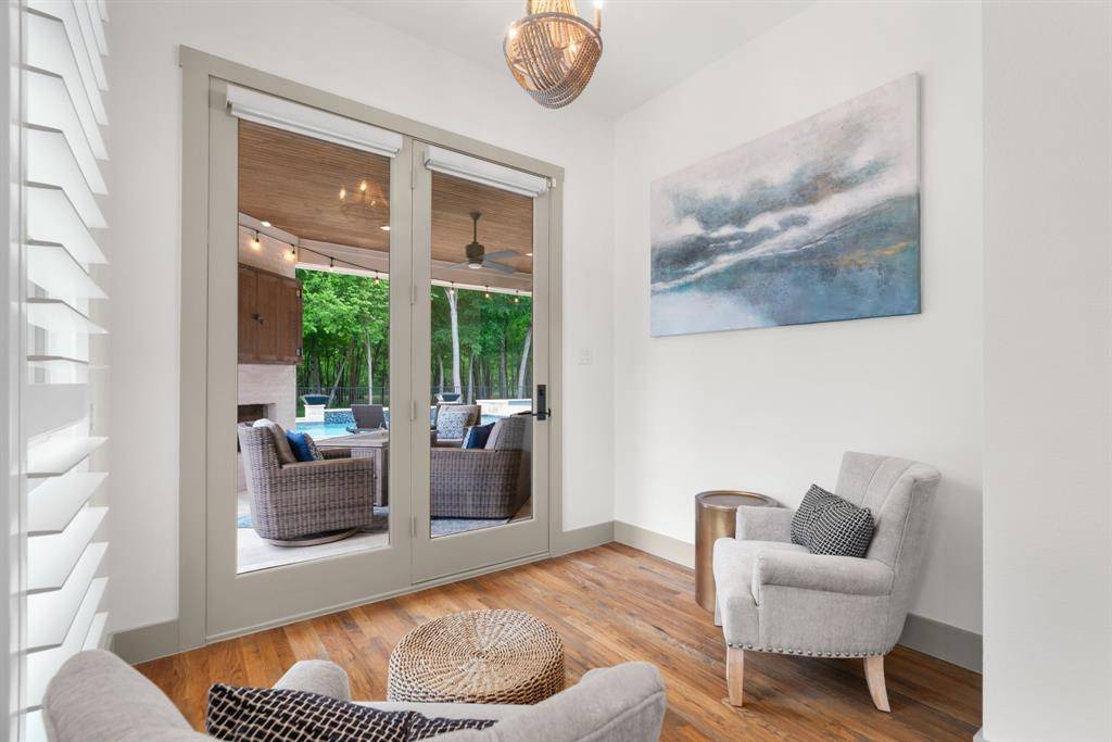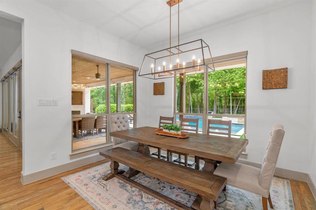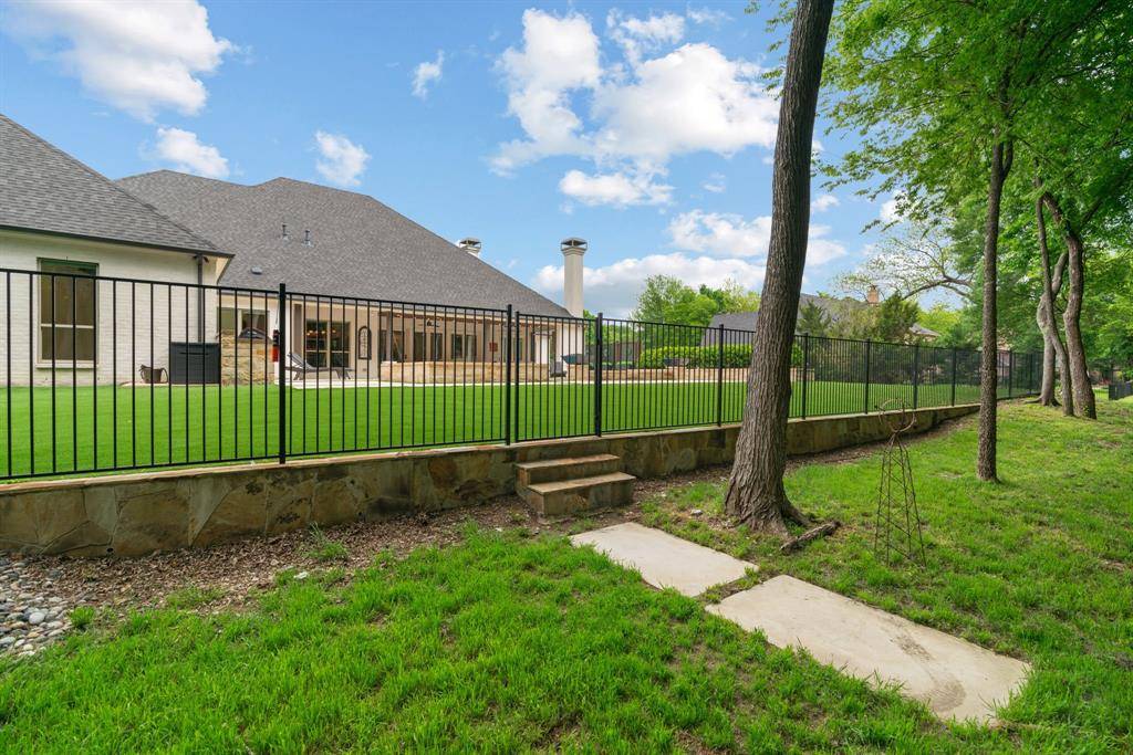 Welcome home to a refined, resort-inspired lifestyle in this stunning estate, privately situated on a two-acre lot with breathtaking sunset views in the sought-after Creekview Landing community of McKinney. Enjoy a peaceful setting just minutes from Historic Downtown McKinney, with convenient access to premier shopping, dining, and entertainment. Blending timeless architecture with elevated design, the home features mature landscaping, lush lawns, an expansive curved driveway with additional parking, and 3-car garage. Inside, a spacious, light-filled living room opens to the kitchen, highlighted by vaulted ceilings with exposed beams, a cozy fireplace, and hardwood flooring. The chef's kitchen includes a walk-in pantry, farmhouse sink, gas cooktop, double ovens, spacious coffee bar area, and custom cabinetry, with generous counter space and storage. The layout offers all bedrooms on the main level with spacious closets and well-appointed baths, plus a versatile flex space ideal for dining or an executive study. The private owner's suite features a sitting area overlooking the acreage and beautiful backyard oasis, a large walk-in closet, and a spa-inspired bath. Upstairs, a flex space with a half bath, perfect for a game room, media room, or guest retreat. Designed for modern living, the home includes Cat6A wiring, fiber internet and built-in storm shelter. The outdoor living experience is exceptional, offering a private, resort-style setting for both relaxation and entertaining. A stunning pool and heated spa are complemented by expansive lounging areas and low-maintenance turf, all framed by a wrought iron fence and open Texas skies. Whether hosting guests or enjoying quiet evenings at sunset, this space offers a seamless blend of luxury, privacy, and everyday escape. Plantation shutters and electric shades add comfort and sophistication throughout. This exceptional estate offers a rare combination of design, privacy, and elevated everyday living.