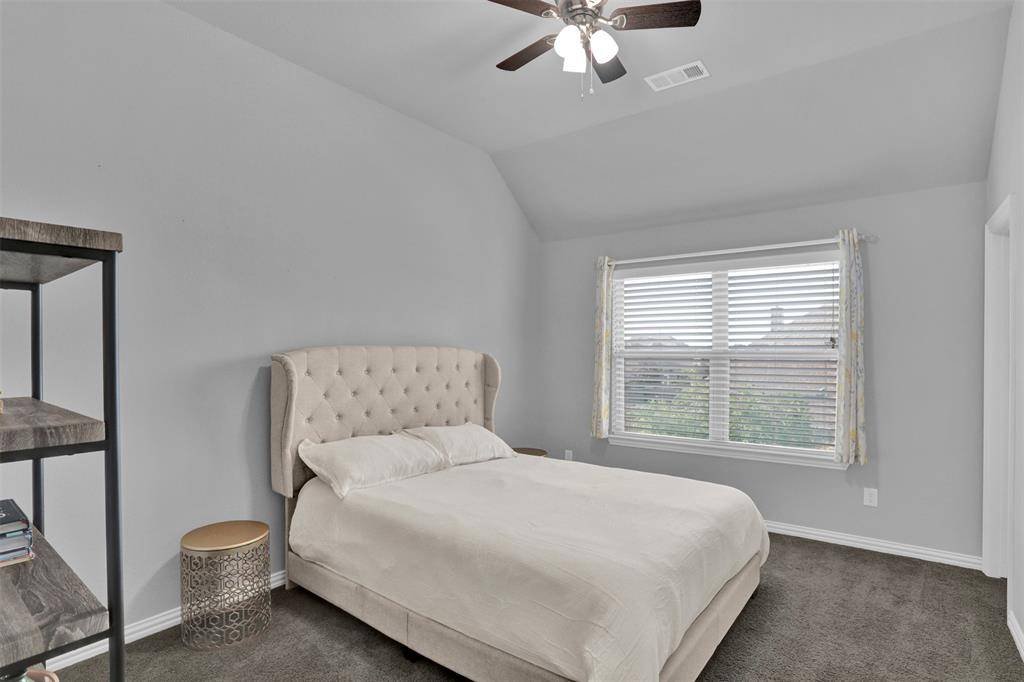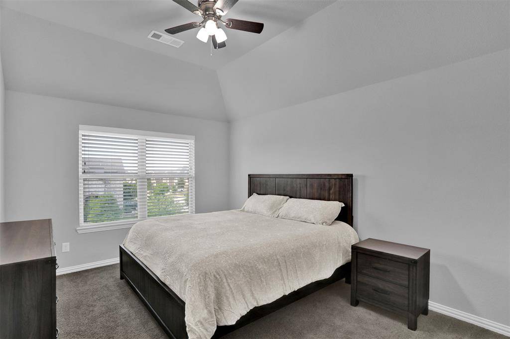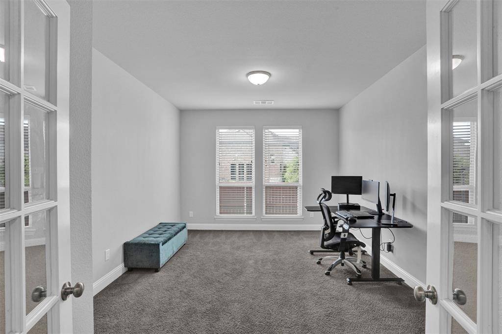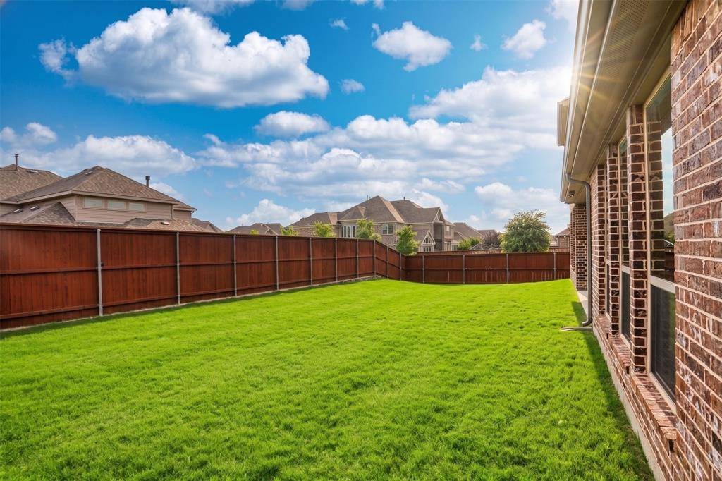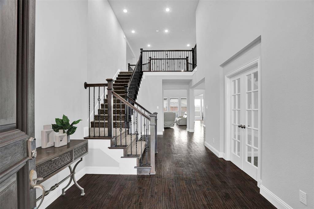 Stunning East facing home on a premium corner lot in the highly sought-after Prairie View community in Frisco, zoned to top-rated Prosper ISD schools! Upon entering, this home welcomes everyone with abundant natural light! The open floor plan features hardwood flooring throughout the main living areas, a formal dining room with views of the side yard with pergola, and a private office with glass French doors and a closet. The spacious living room offers a cozy fireplace and is pre-wired for 5.1 surround sound, creating the perfect gathering space. The chef's kitchen is a true centerpiece with granite countertops, an oversized island with sink, double ovens, chimney hood, pot filler, walk-in pantry, and a butler's pantry perfect for your coffee station. The first-floor primary suite is a relaxing retreat with a soaking tub, separate shower, and large walk-in closet. A guest suite with a private bath is also located downstairs, while upstairs features 3 additional bedrooms, 2 more full bathrooms, plus a game room with wet bar provisions and a media room pre-wired for 11.1 surround sound. Additional highlights include dual HVAC systems, water softener system, advanced hot water system, pre-wired security cameras, alarm system, and WiFi-enabled garage doors. The 3-car tandem garage features epoxy flooring, storage racks, and utility connections. Step outside to enjoy a covered patio with gas line, pergola with solar lighting, raised garden beds with drip irrigation, and a beautifully maintained yard with mature trees. This home is also protected with professionally installed lightning rods for extra safety during stormy Texas days. Enjoy the fantastic community amenities including a resort-style pool with splash pad, covered pavilion, multiple playgrounds, and three parks. Ideally located just minutes from the Dallas North Tollway, Highway 380, and less than 10 minutes from the PGA Headquarters, with easy access to shopping, dining, and entertainment!