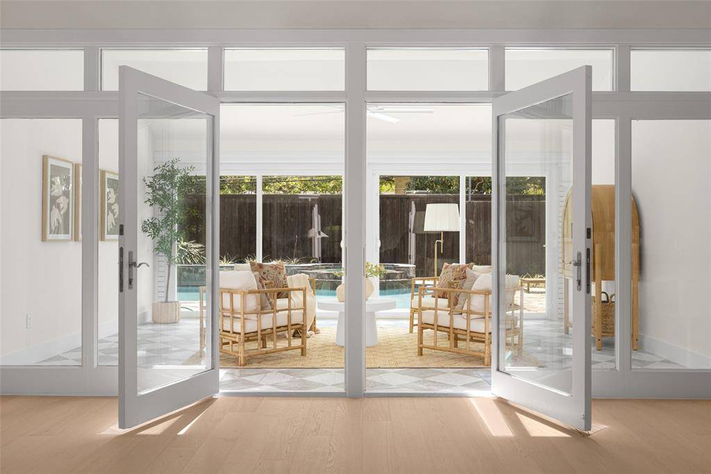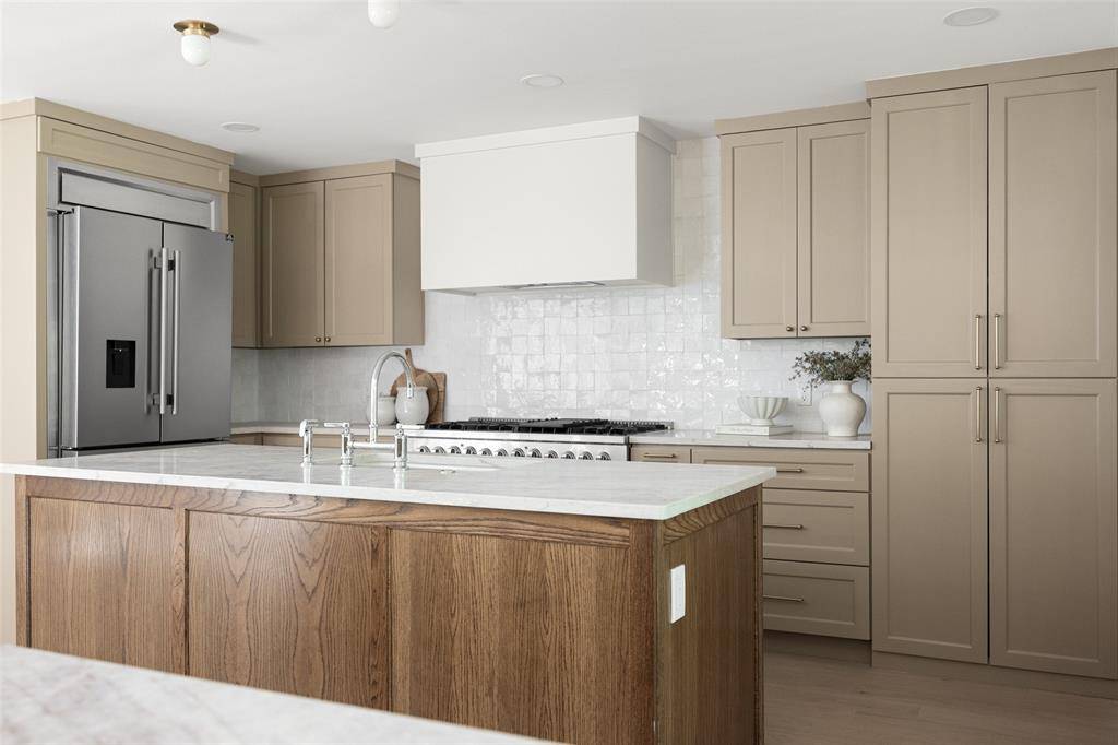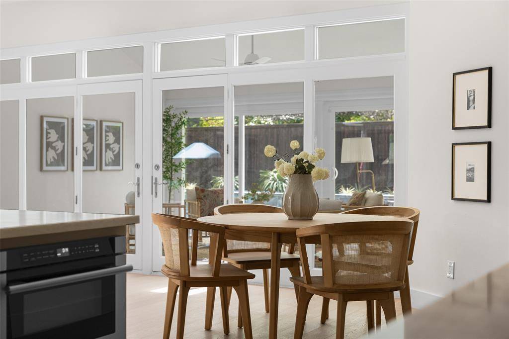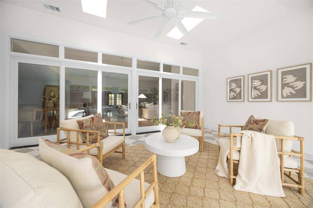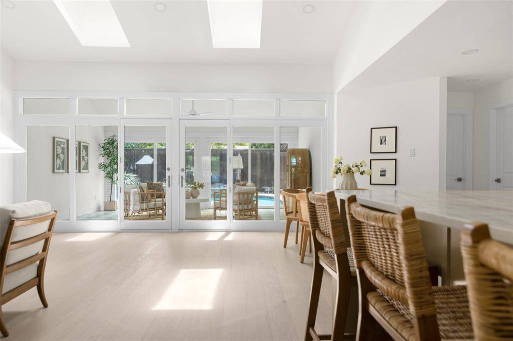 Renovated and thoughtfully reimagined by Maverick Design, this stunning 5-bedroom, 3-bathroom home offers the perfect blend of elevated design and everyday functionality. A bright, open-concept floor plan creates effortless flow, anchored by a grand eat-in chef's kitchen featuring a double island, custom vent hood, and new stainless steel appliances. The kitchen seamlessly overlooks the inviting living space, highlighted by soaring vaulted ceilings, a statement fireplace, and picturesque views of the sunroom and backyard beyond.