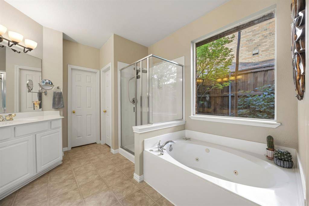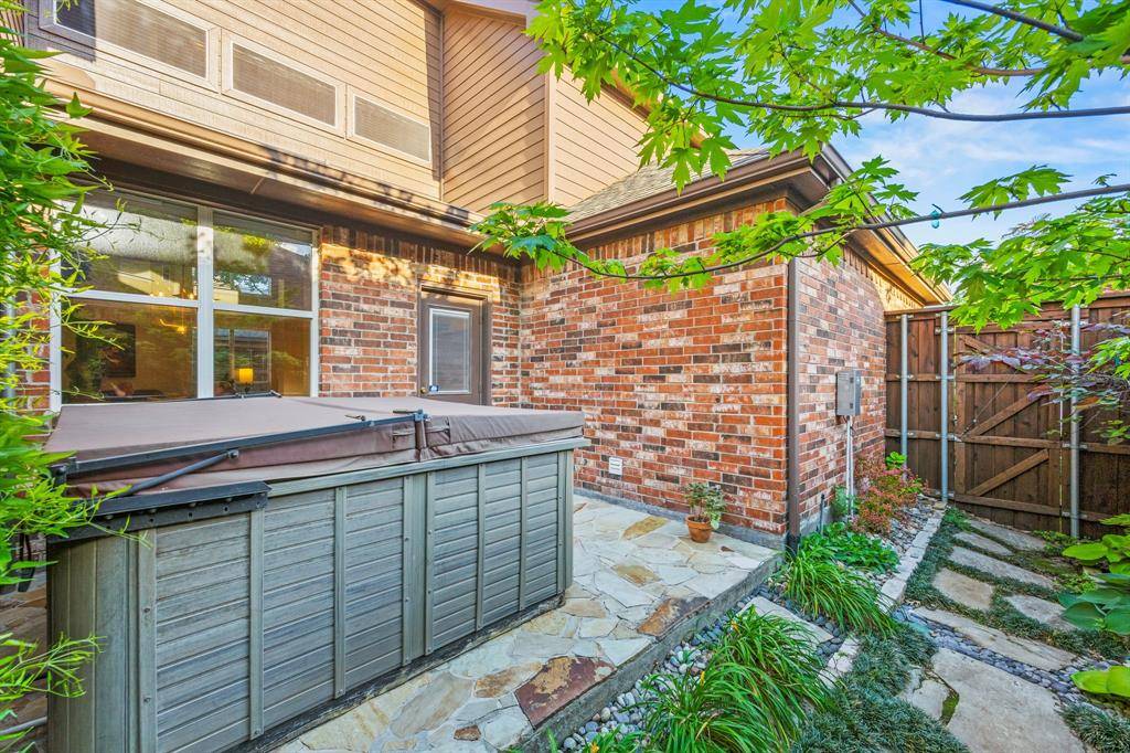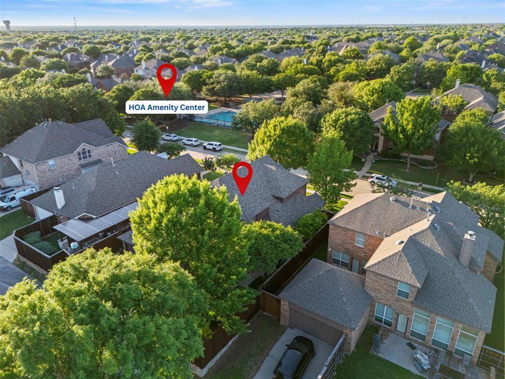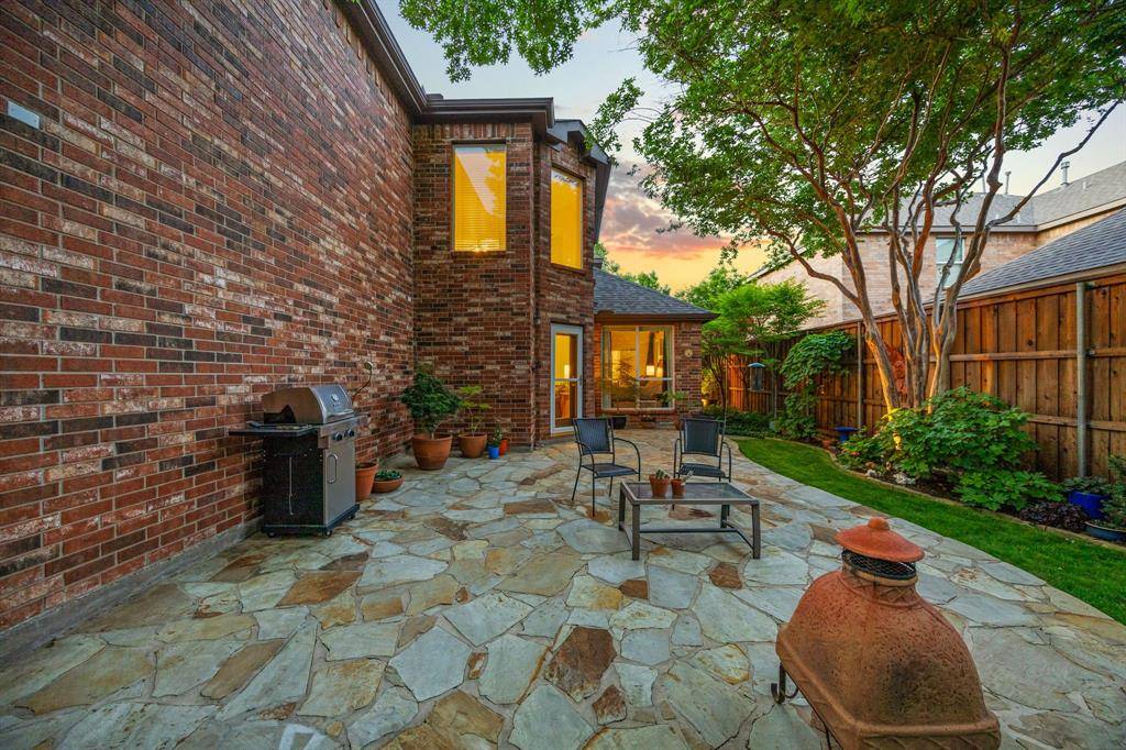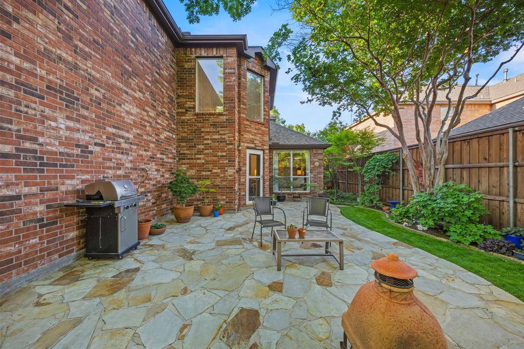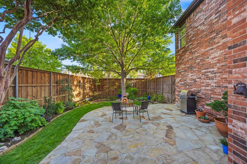 A rare find in Frisco, this home showcases a truly one-of-a-kind backyard oasis with over $80,000 in professional landscaping. Lush, layered greenery, custom stone pathways, mature trees, an 8 ft. fence & thoughtfully designed garden spaces that create a private, tranquil retreat unlike anything else on the market. Every detail has been curated to offer beauty, privacy & year-round enjoyment. Located in the desirable Northridge subdivision and zoned to top-rated Frisco ISD, with Boals Elementary just a short walk away, this 4-bedroom, 3-bath home with a 3-car garage combines lifestyle & convenience. Inside, a light-filled open layout features soaring 20-foot ceilings in the foyer & family room, bamboo & tile flooring, fresh interior & exterior paint, and a spacious living area with a brick fireplace, and an arched niche perfect for a 50-inch TV. The kitchen offers granite countertops, white cabinetry, a large island, stainless appliances, gas cooktop with vent hood, walk-in pantry & butler's pantry connecting to the formal dining room. The primary suite is downstairs with peaceful backyard views, dual walk-in closets & a spacious bath. A dedicated home office supports work-from-home living. Upstairs includes 2 additional living areas, a reading nook & an oversized game room wired for surround sound. Major updates include a 2025 roof, updated HVACs & water heater. The impeccable backyard has a gorgeous stone patio with room for an outdoor kitchen, dining & lounging areas, to enjoy & entertain. The private side yard with a relaxing hot tub is easily accessed via the laundry room. Across from the Community Amenities: pool, playground, volleyball net, and social events. One of the most walkable communities in Frisco, enjoy the conveniences of Sprouts grocery store, coffee shops, pilates studio, pet supply store, dry cleaner, donuts, etc. All minutes to the PGA District, Universal Kids Resort, and the upcoming Northwest Community Park & Fields West high-end development.