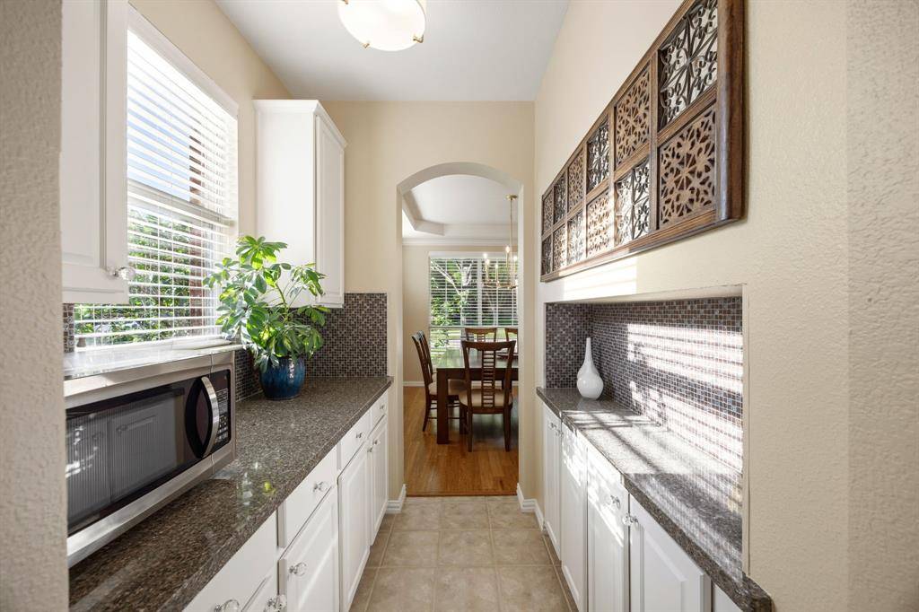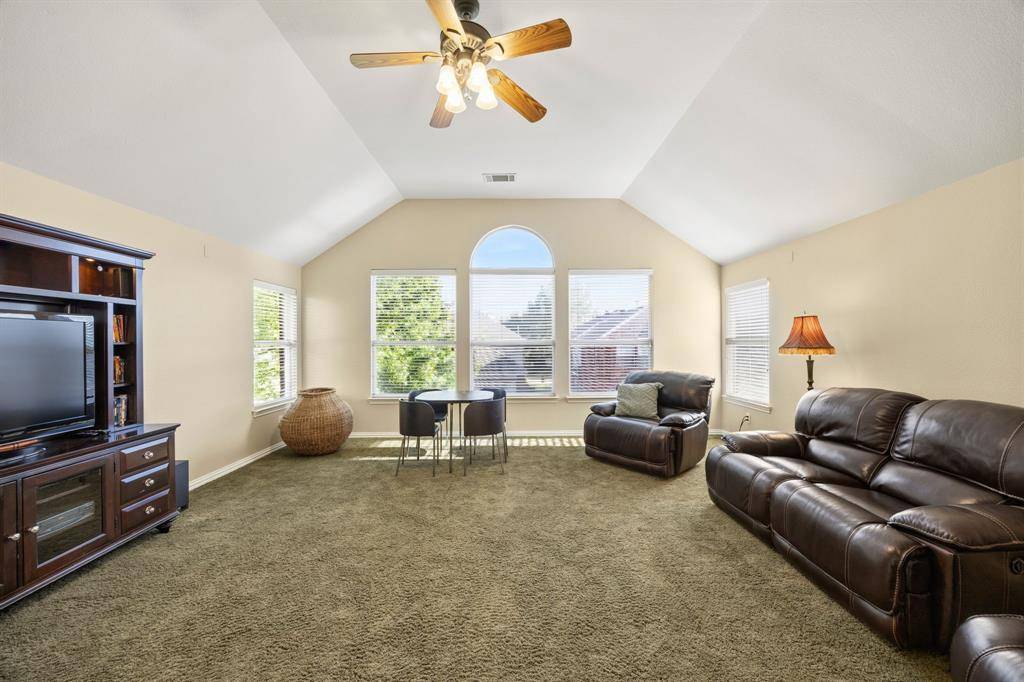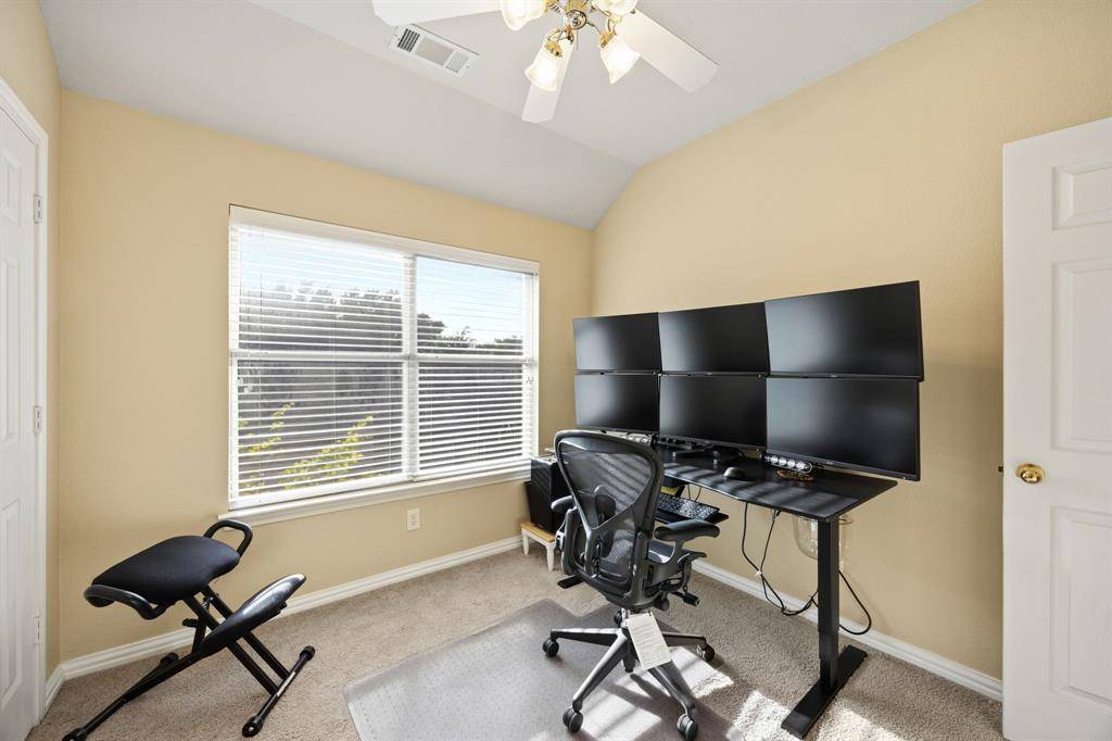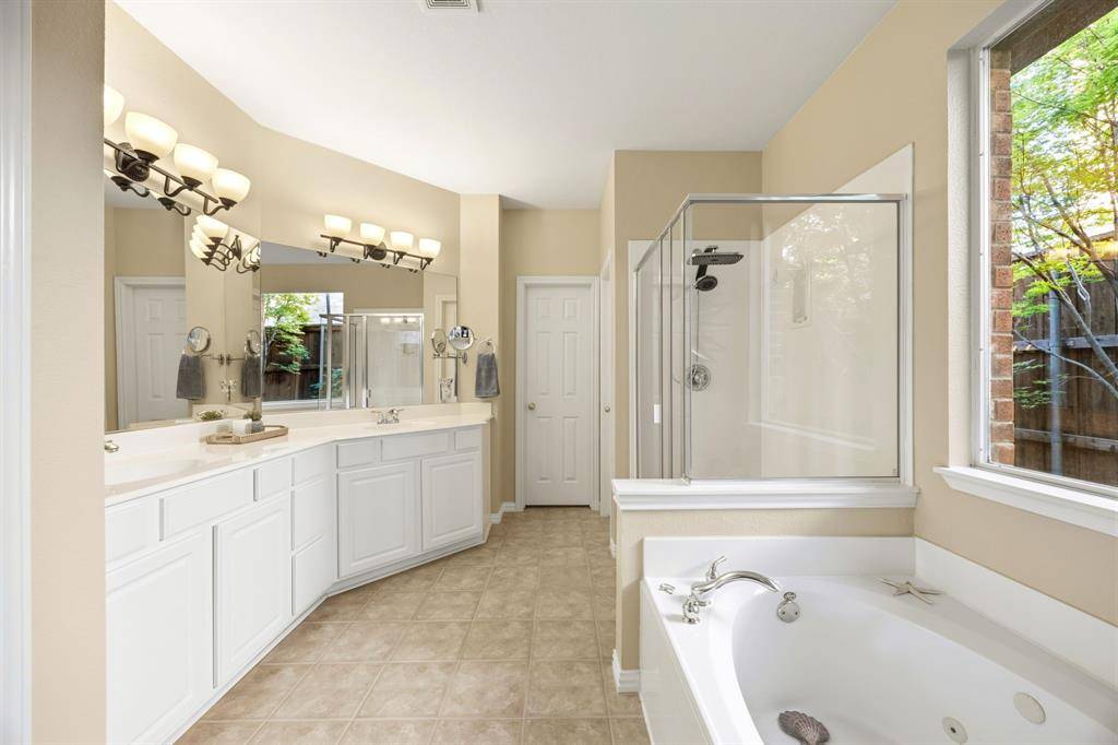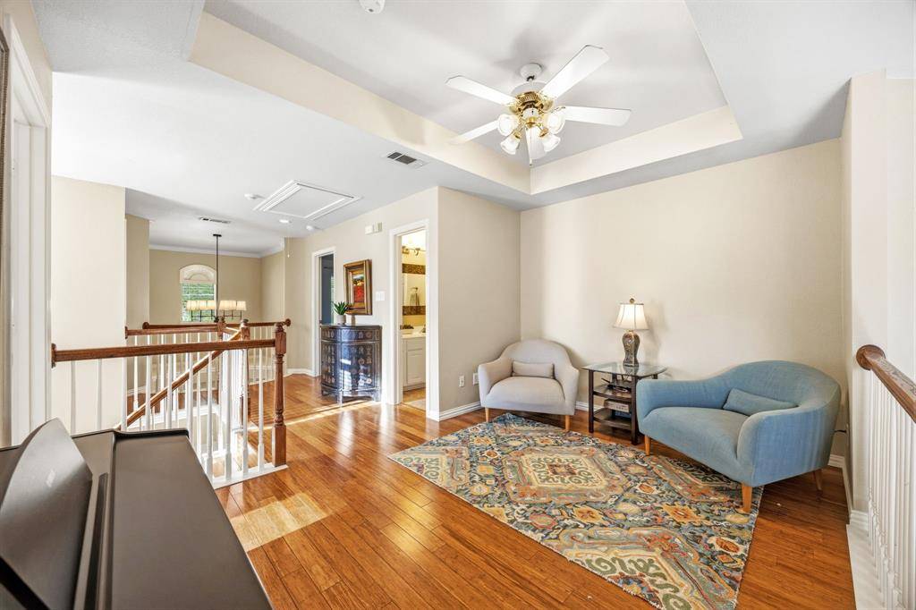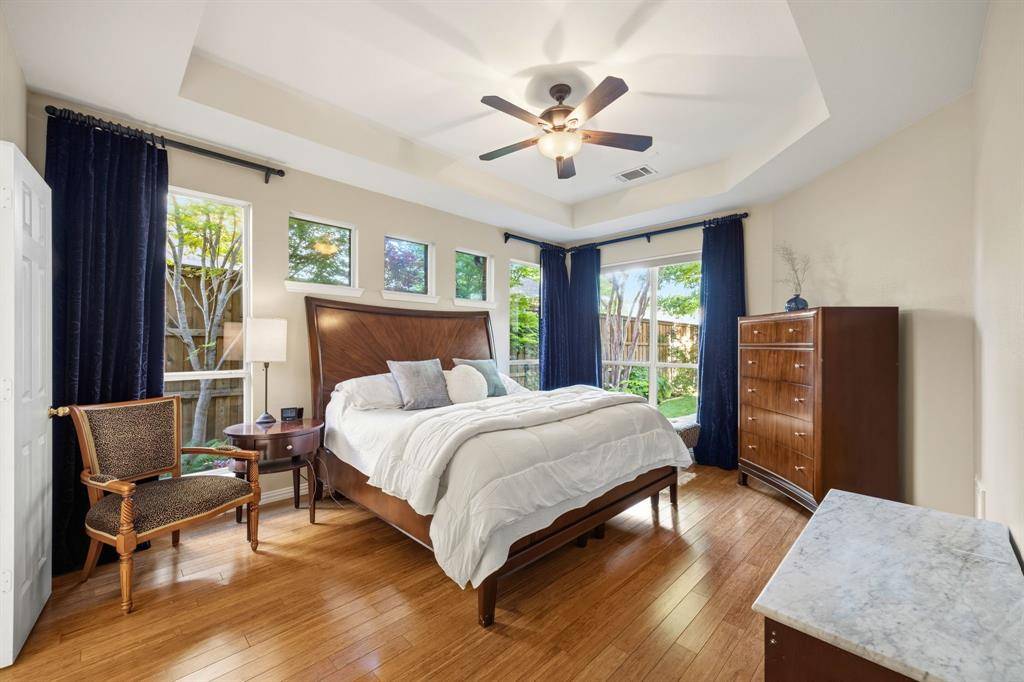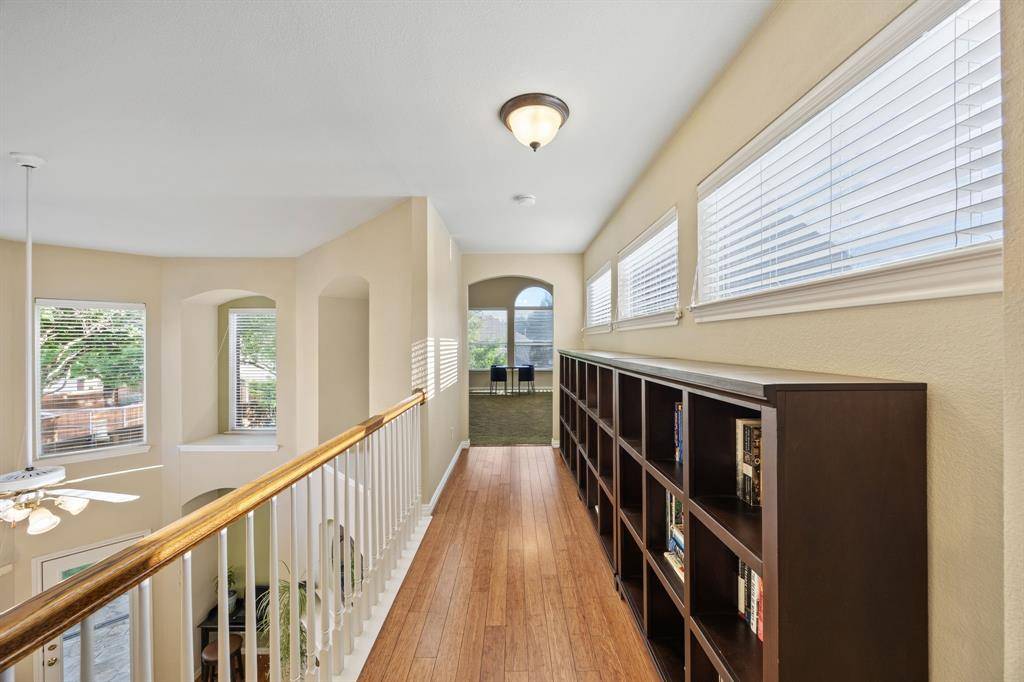 A rare find in Frisco, this home showcases a truly one-of-a-kind backyard oasis with over $80,000 in professional landscaping. Lush, layered greenery, custom stone pathways, mature trees, an 8 ft. fence & thoughtfully designed garden spaces that create a private, tranquil retreat unlike anything else on the market. Every detail has been curated to offer beauty, privacy & year-round enjoyment. Located in the desirable Northridge subdivision and zoned to top-rated Frisco ISD, with Boals Elementary just a short walk away, this 4-bedroom, 3-bath home with a 3-car garage combines lifestyle & convenience. Inside, a light-filled open layout features soaring 20-foot ceilings in the foyer & family room, bamboo & tile flooring, fresh interior & exterior paint, and a spacious living area with a brick fireplace, and an arched niche perfect for a 50-inch TV. The kitchen offers granite countertops, white cabinetry, a large island, stainless appliances, gas cooktop with vent hood, walk-in pantry & butler's pantry connecting to the formal dining room. The primary suite is downstairs with peaceful backyard views, dual walk-in closets & a spacious bath. A dedicated home office supports work-from-home living. Upstairs includes 2 additional living areas, a reading nook & an oversized game room wired for surround sound. Major updates include a 2025 roof, updated HVACs & water heater. The impeccable backyard has a gorgeous stone patio with room for an outdoor kitchen, dining & lounging areas, to enjoy & entertain. The private side yard with a relaxing hot tub is easily accessed via the laundry room. Across from the Community Amenities: pool, playground, volleyball net, and social events. One of the most walkable communities in Frisco, enjoy the conveniences of Sprouts grocery store, coffee shops, pilates studio, pet supply store, dry cleaner, donuts, etc. All minutes to the PGA District, Universal Kids Resort, and the upcoming Northwest Community Park & Fields West high-end development.