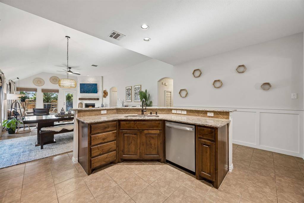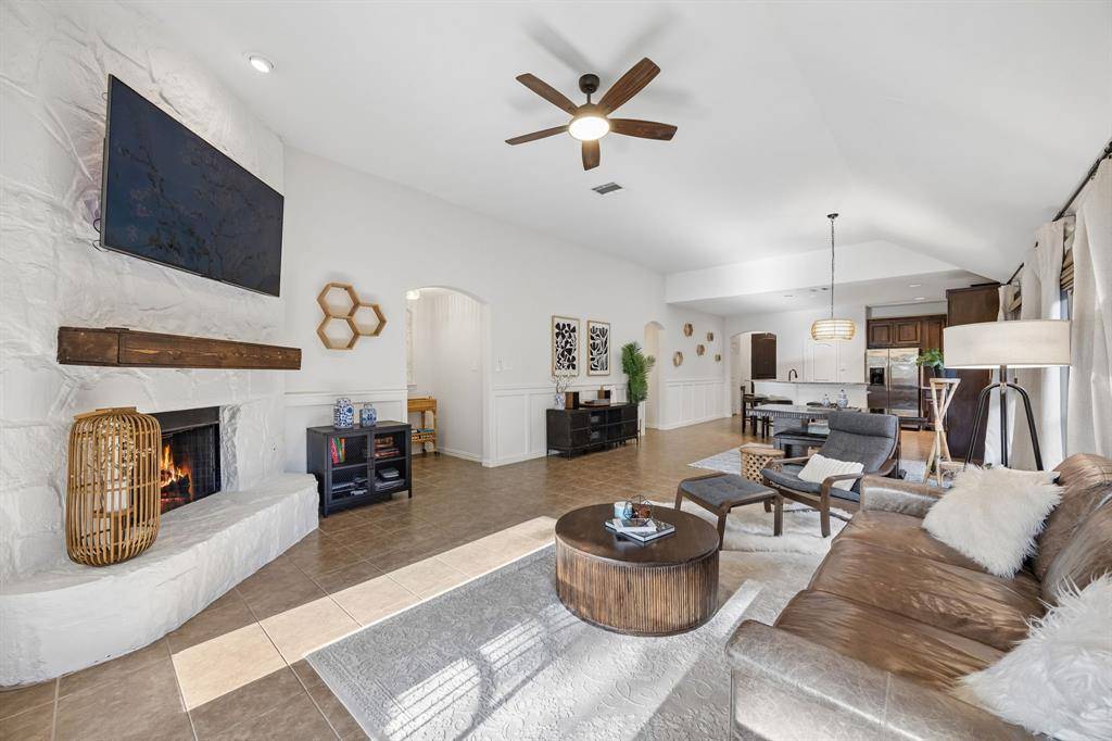 Step inside to an open floor plan with seamless flow between the kitchen, dining, & living areas, filled with natural light throughout. The spacious living room features a cozy fireplace, & views of the private backyard, creating an ideal space for everyday living & entertaining. The kitchen includes granite countertops, ample cabinetry, pantry storage, & a highly functional layout that connects effortlessly to the main living space.