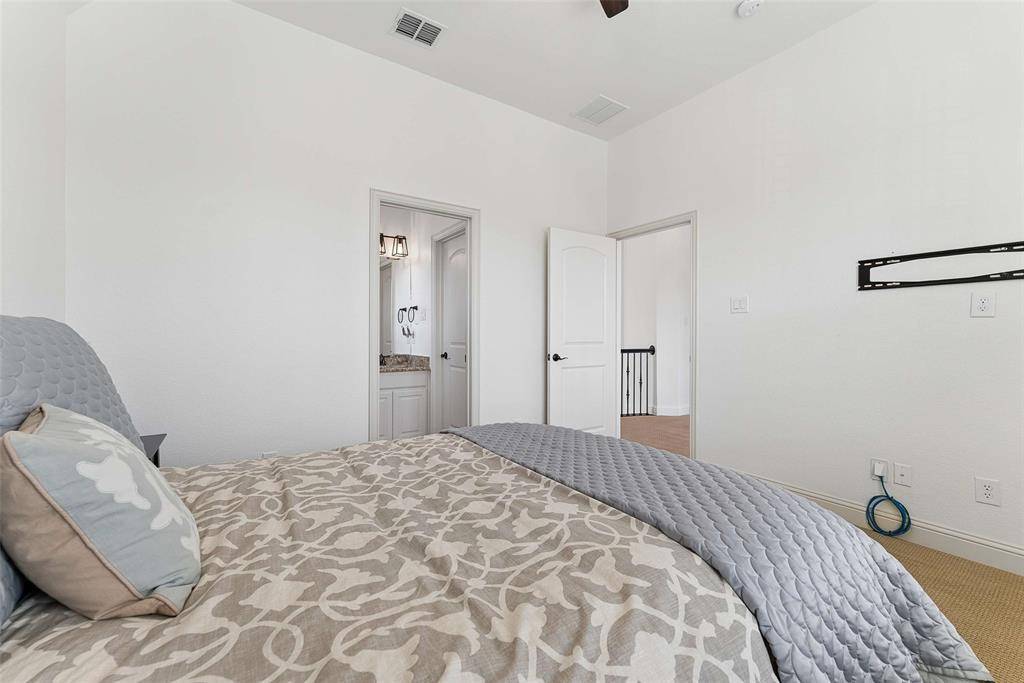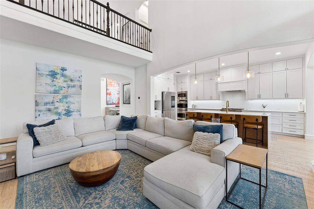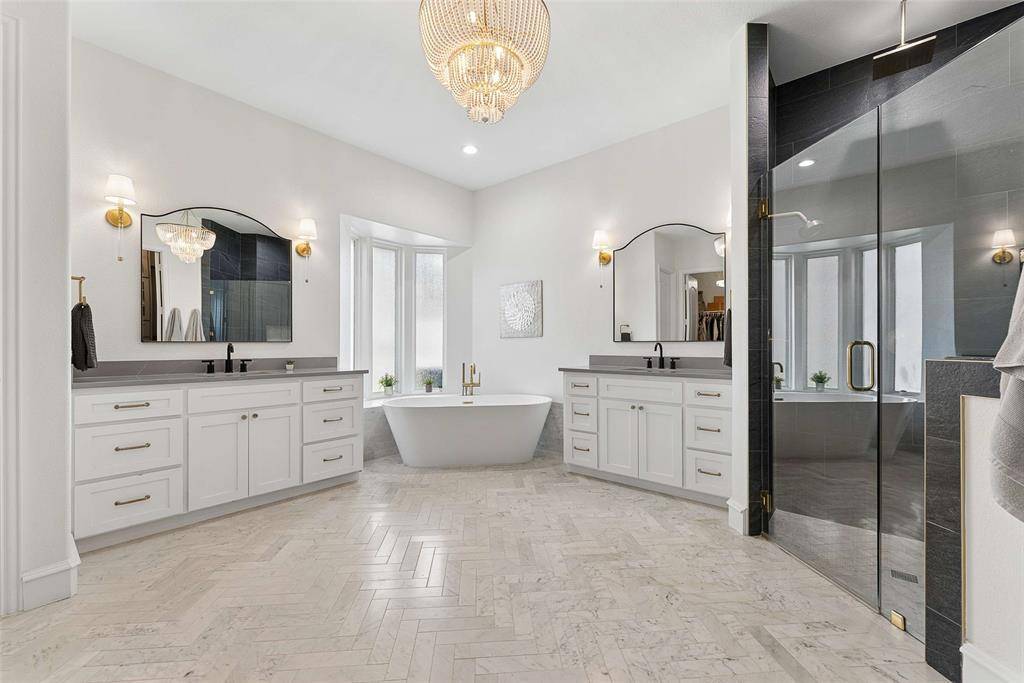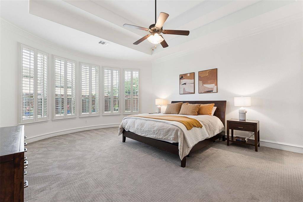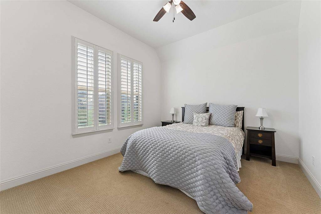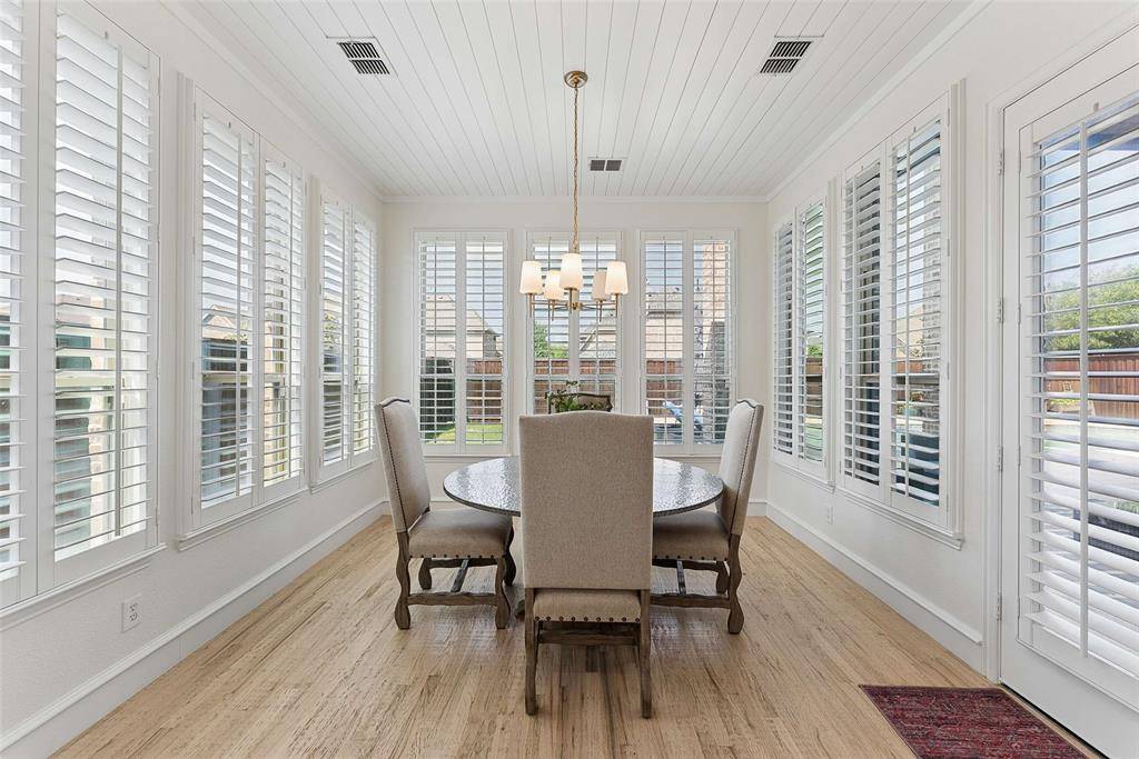 Welcome to Park Place Estates, where timeless design meets modern luxury in a thoughtfully crafted home that offers both elegance and functionality. The open-concept layout is designed for everyday living and effortless entertaining, featuring two bedrooms on the main level—ideal for guests or multigenerational needs—alongside a private study with custom built-ins and a stunning dining room with soaring ceilings. The heart of the home is a chef's dream kitchen, complete with a waterfall island, six-burner range, double ovens, beverage refrigerator, coffee bar, and generous pantry, all flowing seamlessly into a bright breakfast area overlooking serene green space and a spacious living room anchored by a dramatic floor-to-ceiling fireplace. Upstairs, you'll find three additional bedrooms with walk-in closets, a large game room with a custom bar, and a dedicated media room, complemented by professional AV features including built-in speakers, integrated wiring, and security cameras for the ultimate entertainment experience. The primary suite offers a private retreat with a spa-like bath, soaking tub, and expansive custom closets. Step outside to a true backyard oasis featuring a sparkling pool and spa, a covered patio with motorized screens, outdoor TV, built-in grill, and plenty of grassy space for play or relaxation. Located near top-rated schools including Vaughn Elementary School, Pioneer Heritage Middle School, and Wakeland High School (buyer to verify), and just minutes from premier destinations like Legacy West, The Star, PGA of America Headquarters, and Downtown Frisco, this home offers the perfect blend of comfort, convenience, and elevated living.