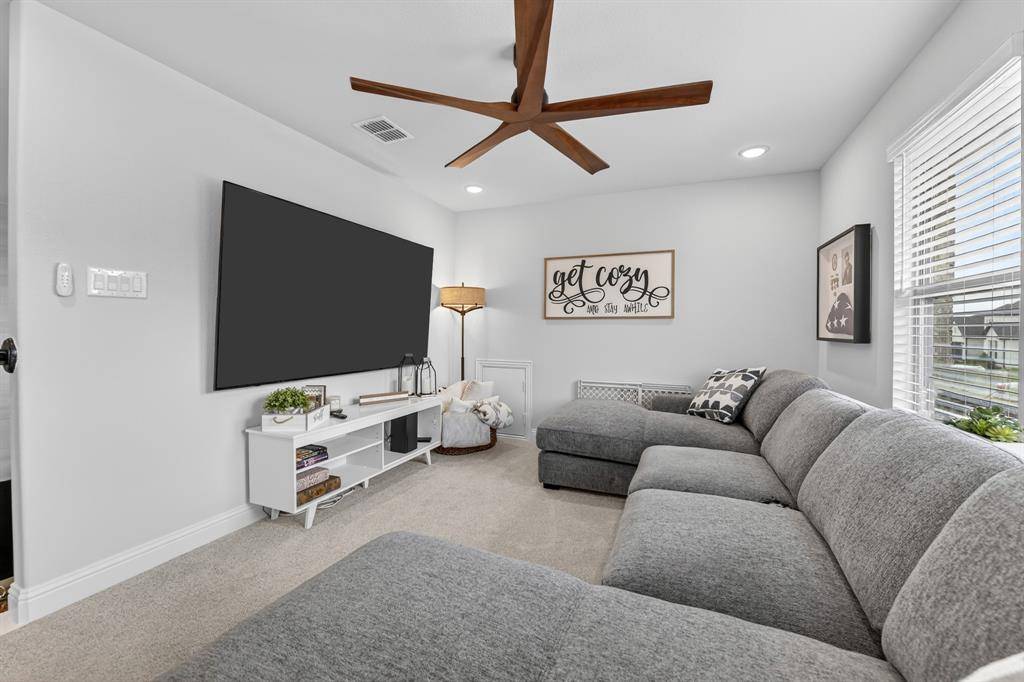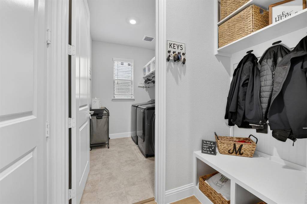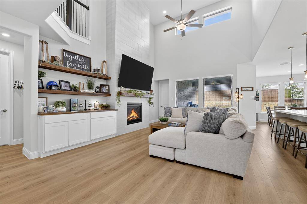 Upgrades include custom living room cabinetry with floating shelves, added kitchen cabinetry, and a beautifully crafted fireplace mantel, ceiling fans throughout, added attic storage in the garage, mudroom bench with built-in storage, enhanced bathroom storage, and designer touches in key living spaces—all contributing to both style and everyday convenience. Located in the sought-after South Oak community, residents enjoy lakeside living with walking trails, a catch-and-release pond, and a clubhouse featuring a resort-style pool, fitness rooms, and inviting lounge areas.