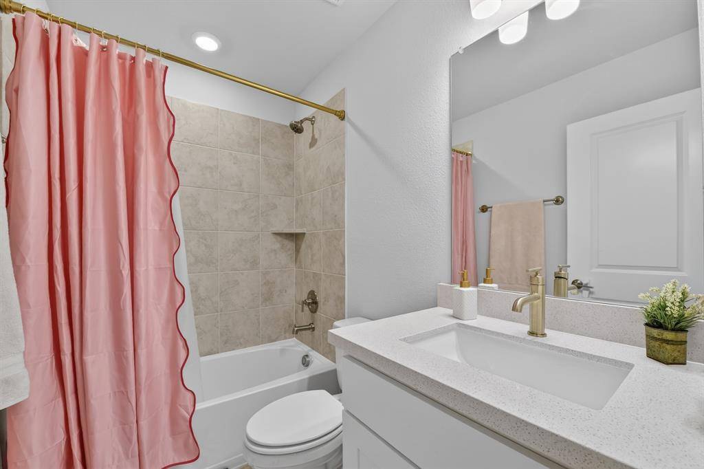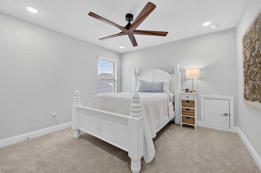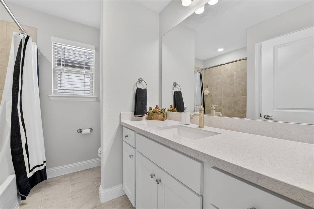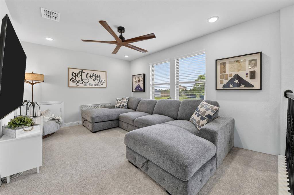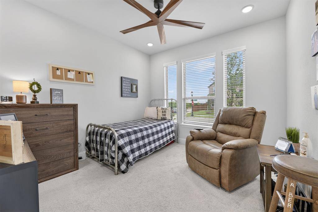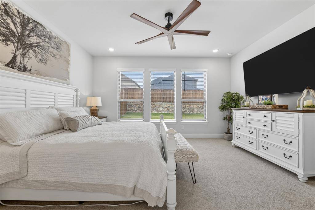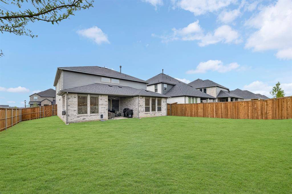 $5,000 Seller's Concessions towards closing costs! The beautifully appointed two-story home, gently lived in and enhanced with over $30,000 in high-quality upgrades, offering a level of finish and functionality far beyond standard builds. Designed for modern living, this 5-bedroom, 4 full bath residence delivers the perfect blend of space, comfort, and elevated details throughout. Step inside to a spacious living area and an expansive game room, ideal for both everyday living and entertaining. The gourmet kitchen flows seamlessly into the dining and gathering spaces and is elevated with custom built-ins, added storage, and refined design elements that leave a lasting impression. The main-level primary suite is a true retreat, featuring a spa-like bath and a walk-in closet. A secondary bedroom and full bath off the foyer provide excellent flexibility for guests or a home office. Upstairs, you'll find three additional bedrooms, two full baths, a tech area, and a large game room all enhanced by upgraded LED disk lighting for a clean, modern feel. Situated on a desirable corner lot and within walking distance to Lake Lewisville, the home offers scenic views of the lake and nearby water features, creating a peaceful, picturesque setting. Outdoor living is equally inviting, with a covered patio complete with ceiling fans and ambient fence lighting that is perfect for relaxing or entertaining.