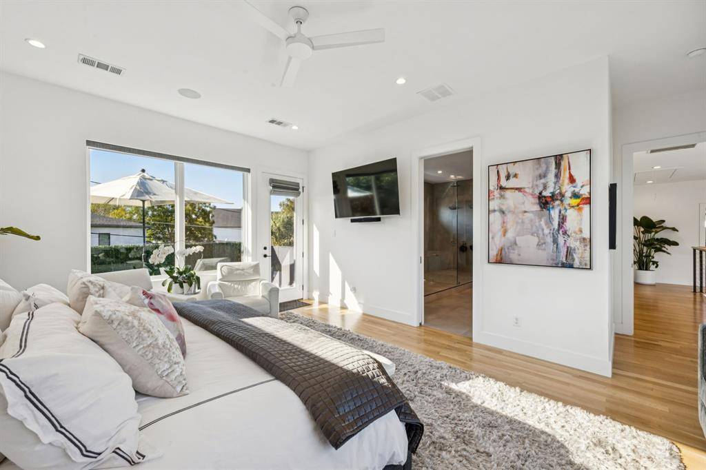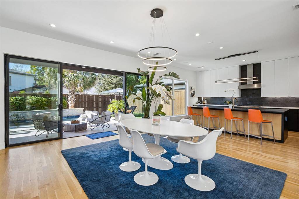 The main residence features a thoughtfully designed 3-bedroom, 3.1-bath layout, with all bedrooms privately situated on the second level. Light-filled living spaces are defined by clean architectural lines and enhanced by three sets of sliding glass doors that fully open, creating a seamless, continuous connection from the courtyard through the interior and out to the backyard.