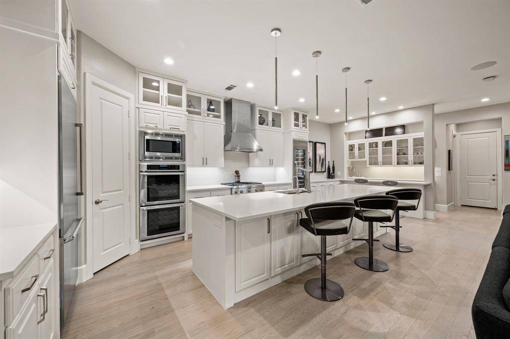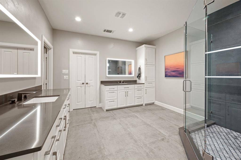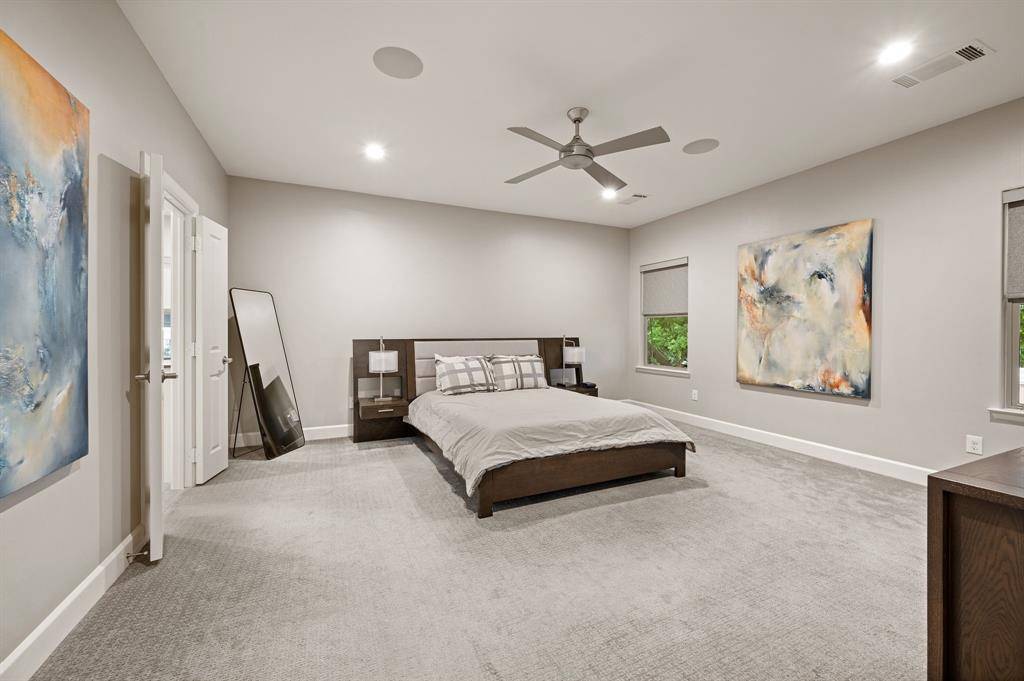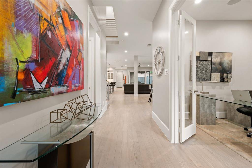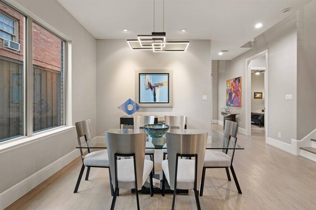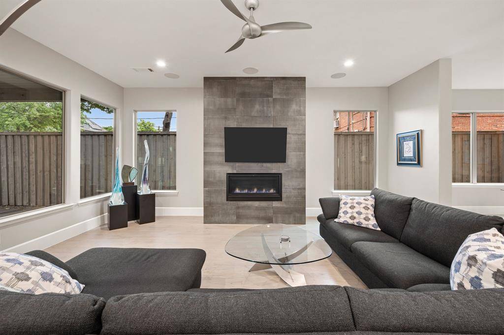 Welcome to this stunning, design-forward duplex offering the perfect blend of modern elegance and everyday functionality, all in an unbeatable location within walking distance to NorthPark Mall, dining, and entertainment. From the moment you enter, you're greeted by a private office and a guest suite with its own ensuite bath, while luxury vinyl plank flooring leads you into an expansive open-concept living space made for both relaxing and entertaining. The chef's kitchen is a true centerpiece, featuring stainless steel Thermador appliances, a full-size wine fridge, abundant cabinetry, and an oversized island with generous counter space ideal for gathering. The kitchen flows seamlessly into the dining area and spacious living room, where large windows fill the space with natural light and overlook the covered patio and outdoor grilling area. This thoughtfully designed home offers 4 spacious bedrooms, each with its own ensuite bath, providing ultimate comfort and privacy. Upstairs, a split floorplan includes two additional bedrooms, along with a versatile flex space perfect for a game room, fitness area, or second living space. A convenient wet bar connects to the media room, creating an ideal setup for entertaining. The primary suite is a luxurious retreat, featuring a spa-inspired bathroom with marble countertops, dual sinks with backlit mirrors, and an oversized walk-in closet with custom built-ins. Step outside to enjoy a covered patio with seating and a built-in grill, while the hardscaped front and backyard offer low-maintenance living. This exceptional home combines high-end finishes, smart design, and a prime location, truly a must-see!