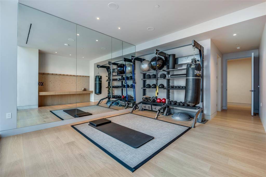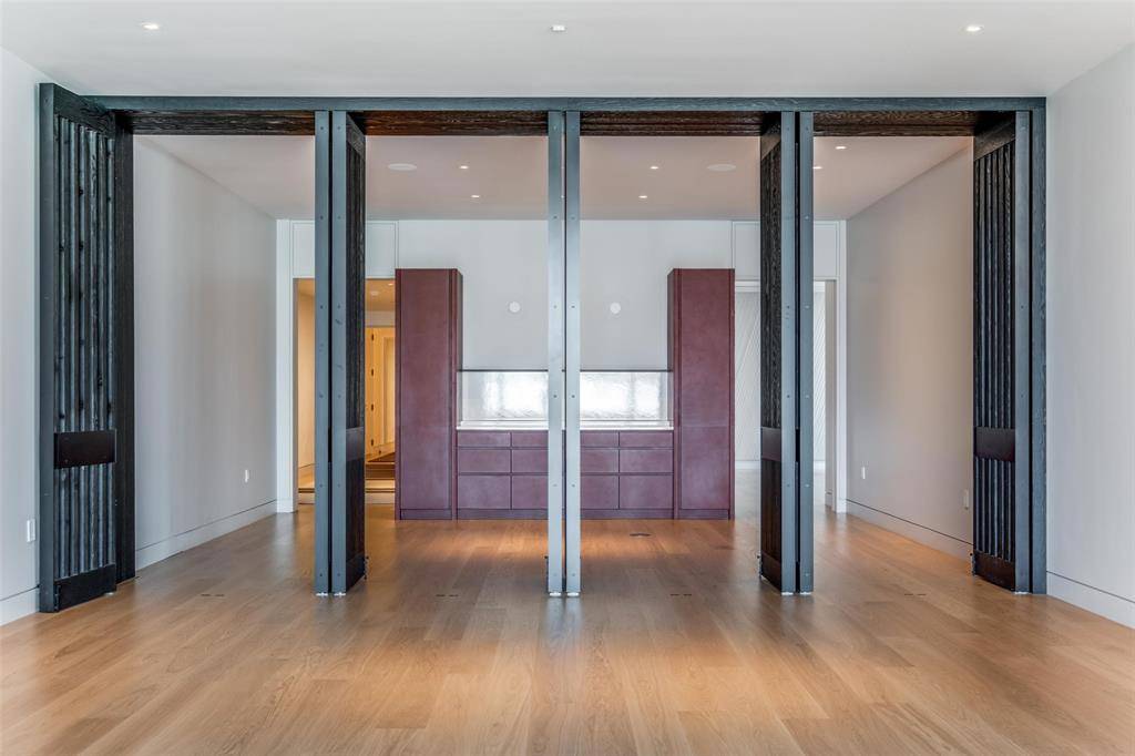 Designed with a clean, modern sensibility, the home features Venetian plaster walls and many thoughtfully curated finishes throughout. The bulthaup kitchen is equipped with Gaggenau appliances, a wine refrigerator, dining area and kitchen island. A well-appointed butler's pantry enhances functionality with additional storage and prep space.