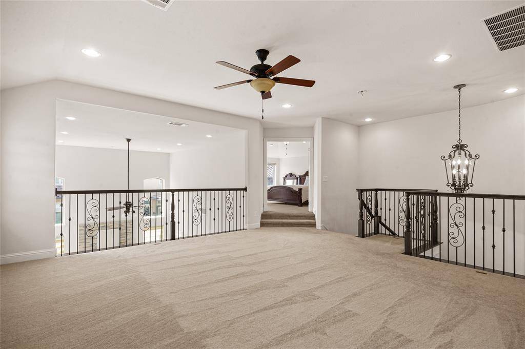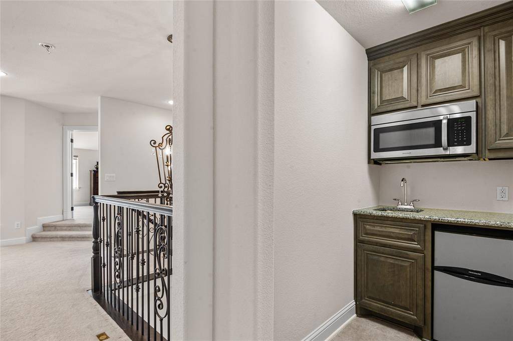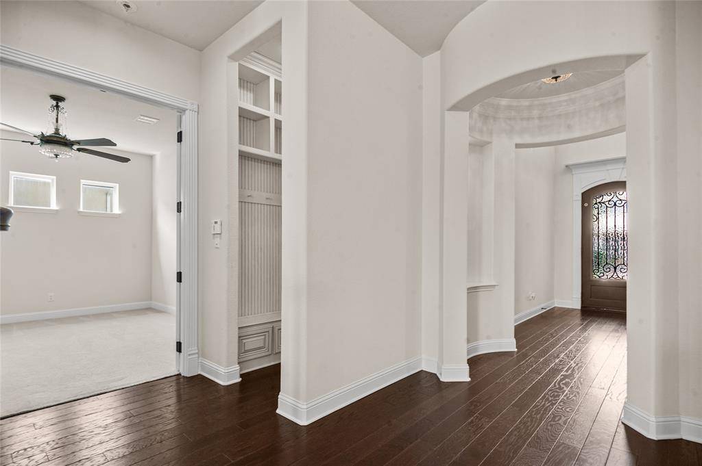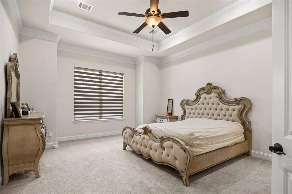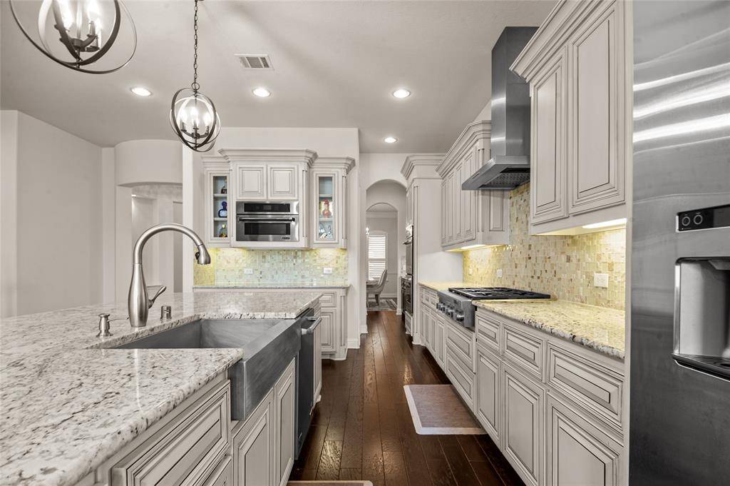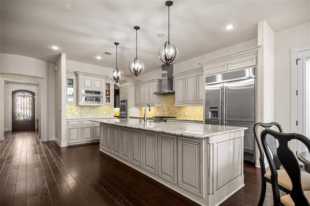 Gorgeous Toll Brothers stucco home in the luxury West Park community of central Plano, combining high-end design with everyday comfort. The gourmet kitchen is a standout feature, offering a full suite of JennAir appliances, including a built-in refrigerator. Two crystal chandeliers add an elegant touch and enhance the home's refined feel. The property also enjoys one of the community's most desirable locations, positioned diagonally across from a scenic, landscaped lake and steps from the neighborhood pool.